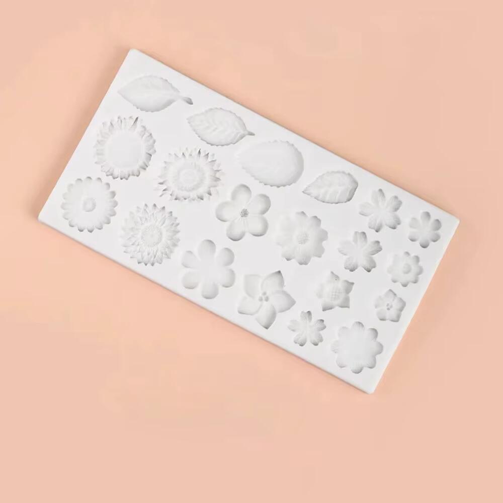 قالب سيليكون مولد للشوكولاتة ، قالب لصنع الزهور الصغيرة مثل الورود وأوراق الشجر وعباد الشمس والأقحوان