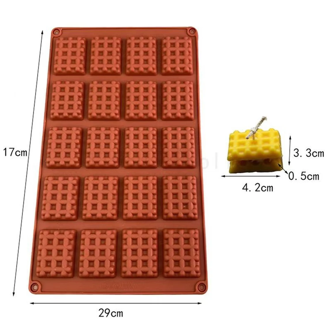 قالب الوافل مصنوع من السيليكون عالي الجودة، مما يضمن الاستخدام طويل الأمد. هذا هو قالب السيليكون لصنع شمع الوافل الصغير. ! ! يرجى التأكد مما إذا كان حجم القالب والمنتج النهائي يمكن أن يلبي احتياجاتك قبل الطلب. ! !