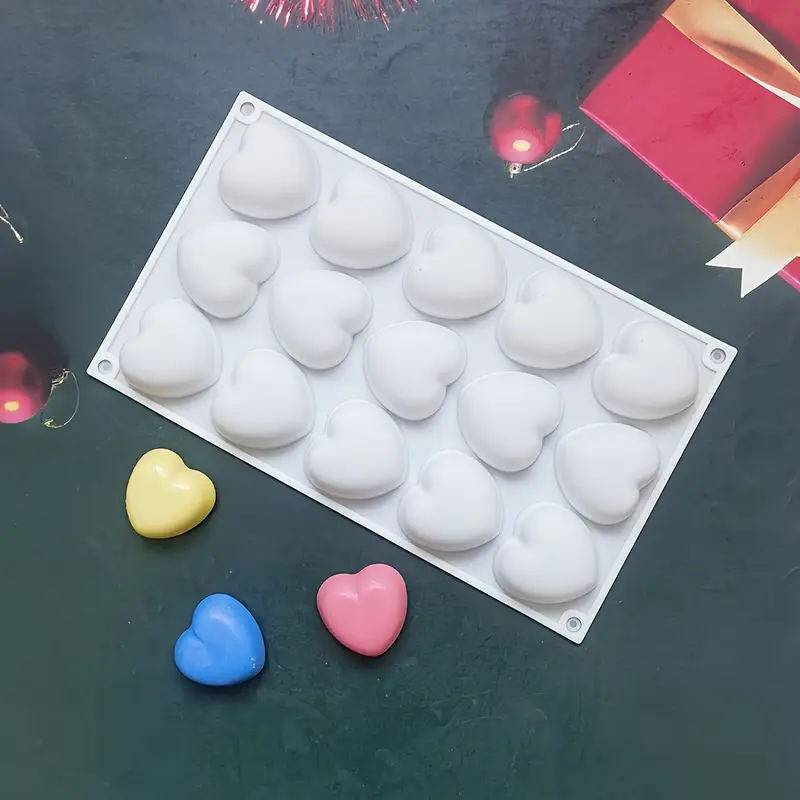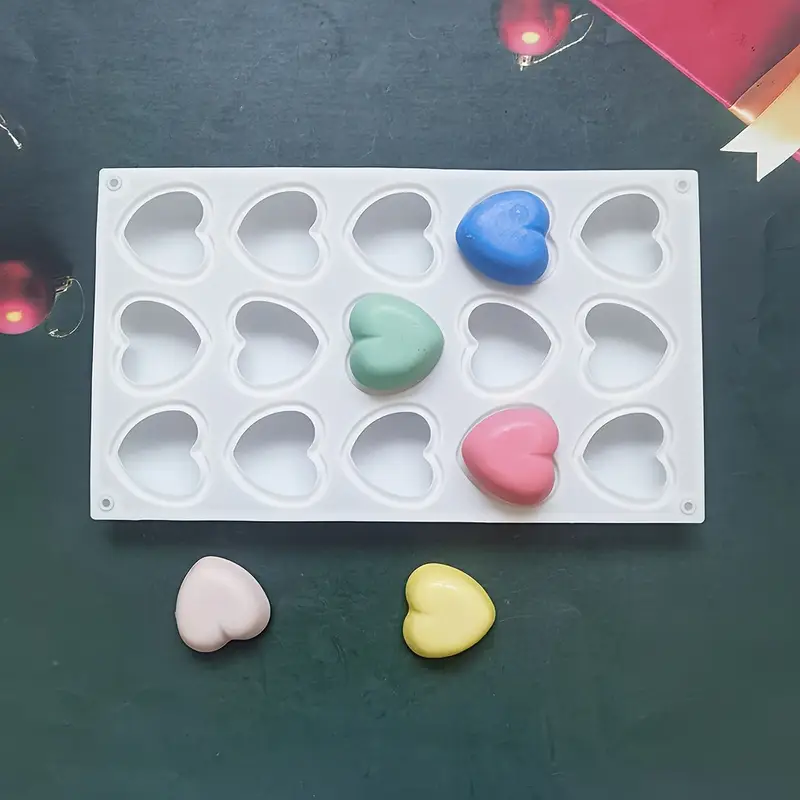 قالب سيليكون واحد بـ 15 تجويفًا، قالب بودنغ بسكويت الشوكولاتة على شكل قلب، قالب تزيين الكيك، قالب حلوى موس، ملحقات المطبخ، أدوات الخبز، لوازم اصنعها بنفسك