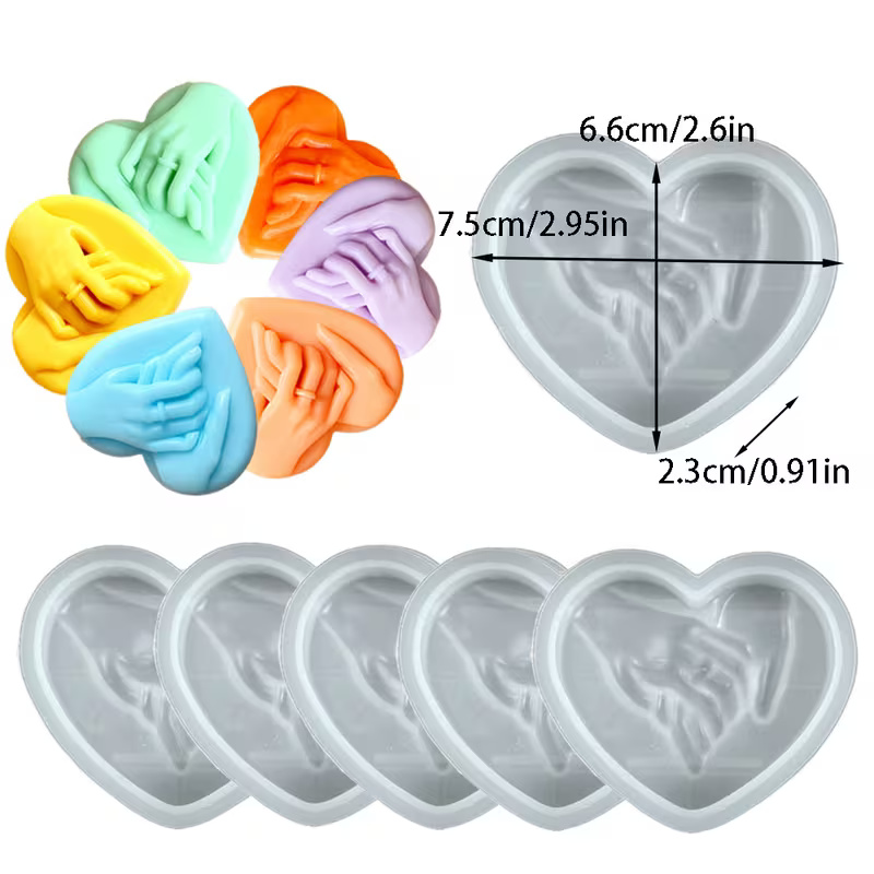 قالب سيليكون شمعة على شكل قلب باليدين ثلاثي الأبعاد، مناسب لعرض الخطوبة و الزواج مناسب لشمع عيد الحب ، والصابون