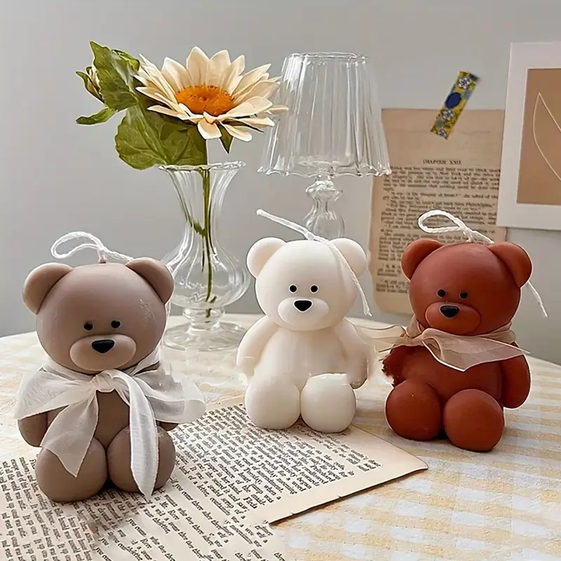 قالب شمعة سيليكون ثلاثي الأبعاد لطيف على شكل دب كرتوني من TOPYS، مقاسين قالب خبز مكعبات ثلج من الراتينج والجبس، ديكور غرفة النوم، هدايا حفلات أعياد الميلاد، هدايا تذكارية للزفاف (1.8 بوصة)