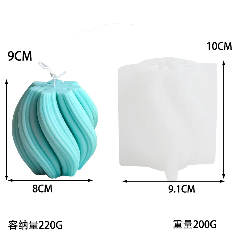 - حجم قالب الشموع الحلزونية: 9 × 9 × 10 سم, حجم الشمعة: 8 × 8 × 9 سم