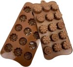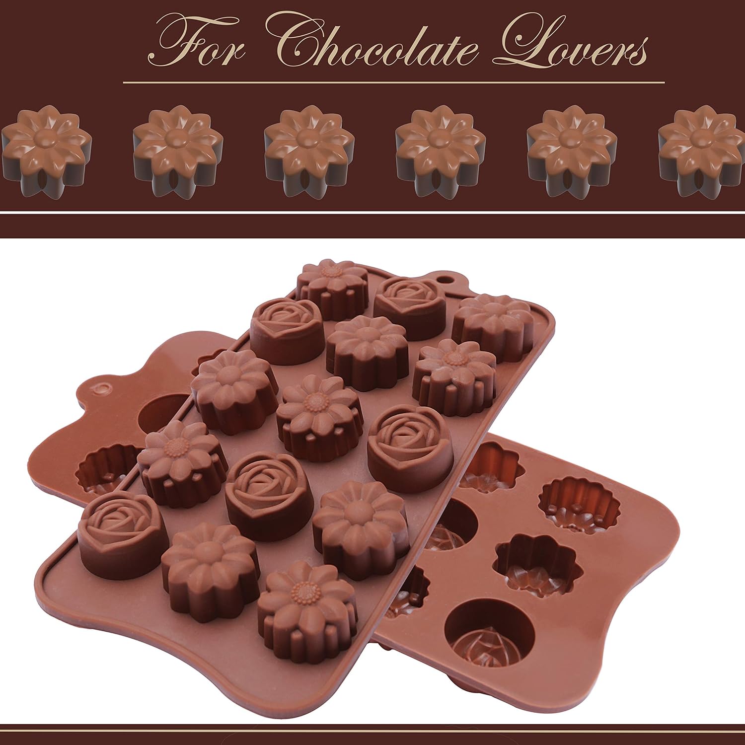 قالب شوكولاتة على شكل زهرة وأوراق - حلوى ثلجية 15 تجويفًا في صينية القالب - تزيين الكيك للمناسبات/الحفلات (بني، سيليكون) (زهرة وأوراق)