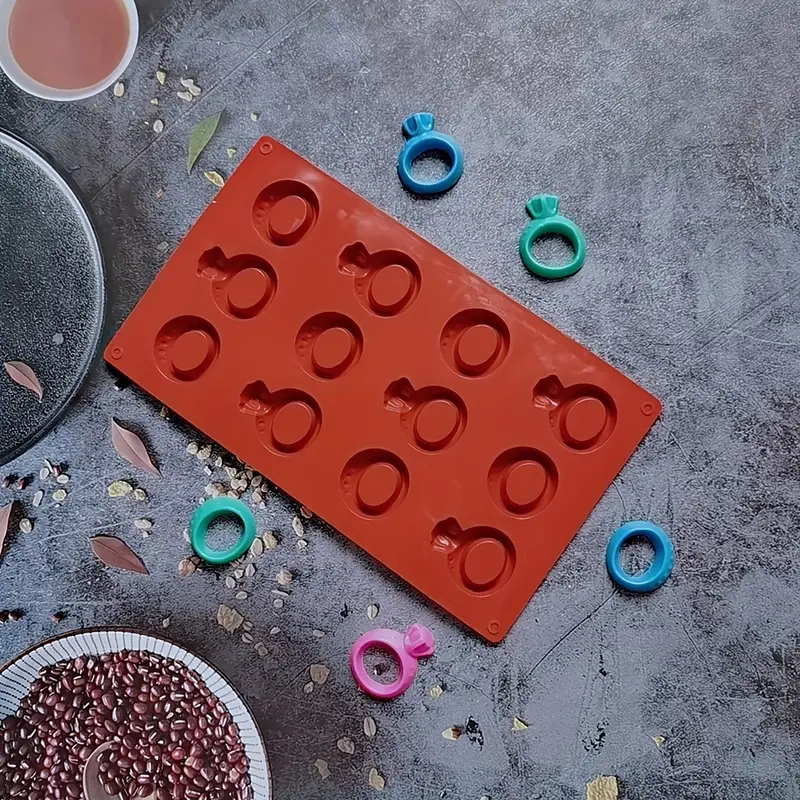 قالب شوكولاتة على شكل خاتم ألماس من السيليكون، خالٍ من مادة BPA، صينية حلوى ترافل صغيرة، صينية مكعبات ثلج للحلوى لتزيين الكيك والخبز – قطعة واحدة