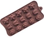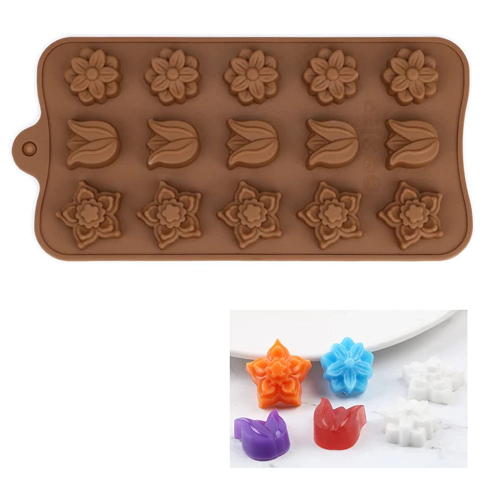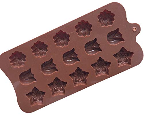 قالب شوكولاتة على شكل زهرة وأوراق – حلوى ثلجية 15 تجويفًا في صينية القالب – تزيين الكيك للمناسبات/الحفلات (بني، سيليكون) (زهرة وأوراق)