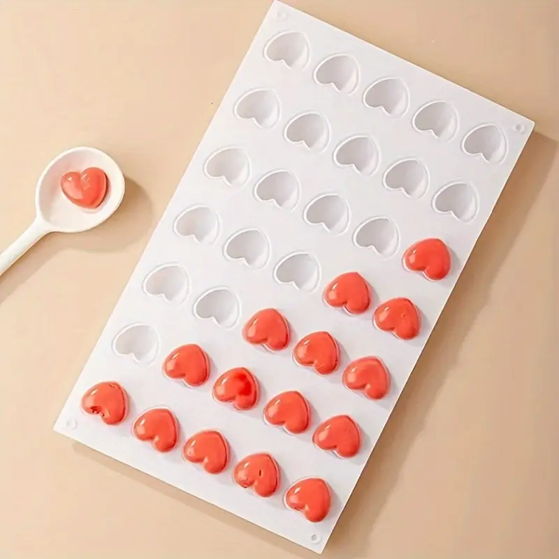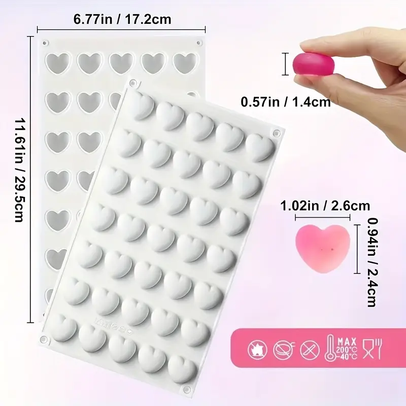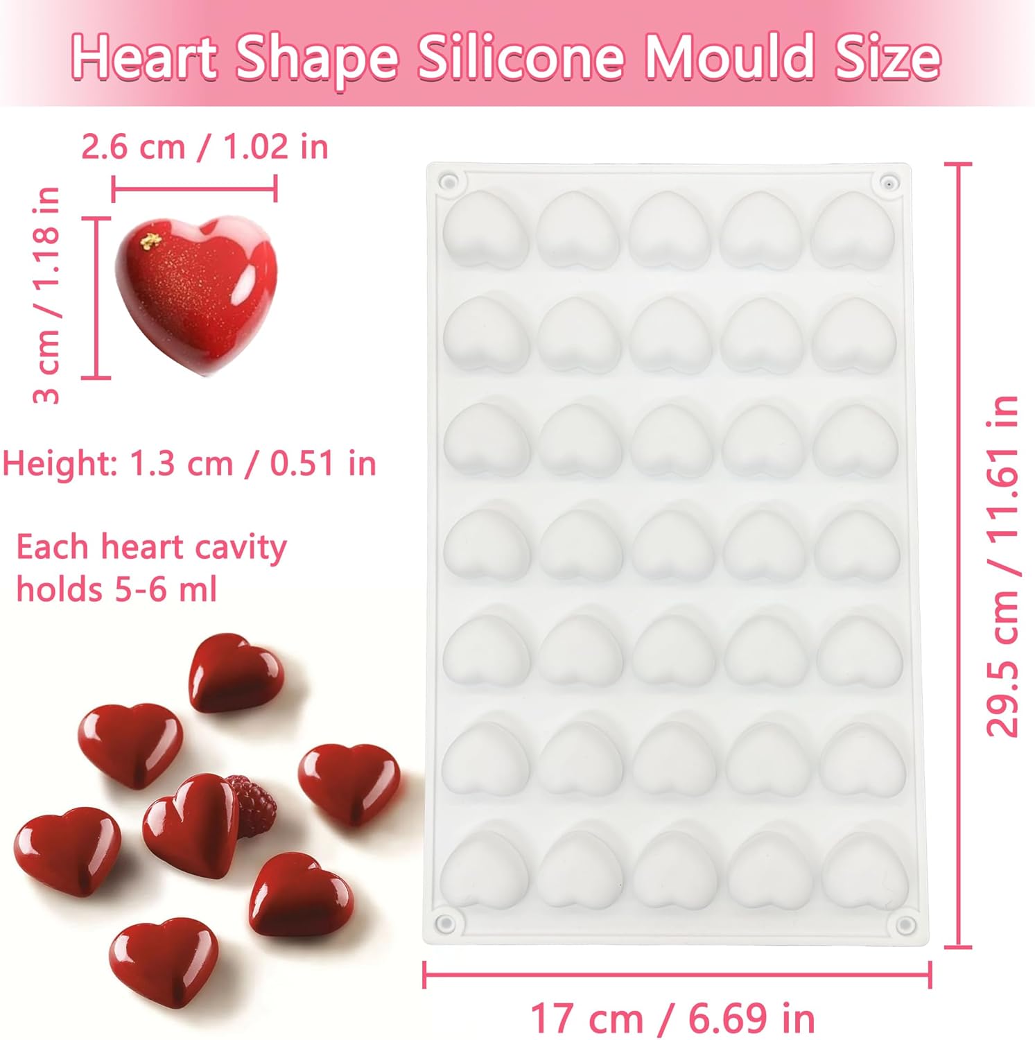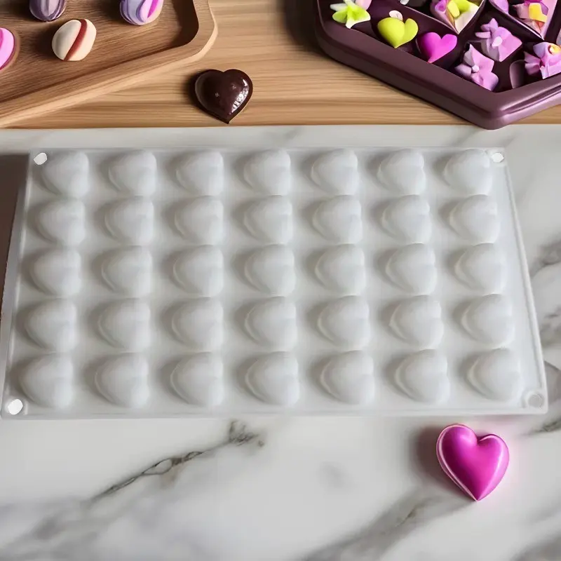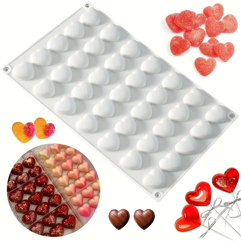 قالب شوكولاتة على شكل قلوب من السيليكون، قوالب شوكولاتة على شكل قلب مع 35 تجويف، قالب سيليكون على شكل قلب للشوكولاتة والحلويات والشوكولاتة وتزيين الكيك بنفسك