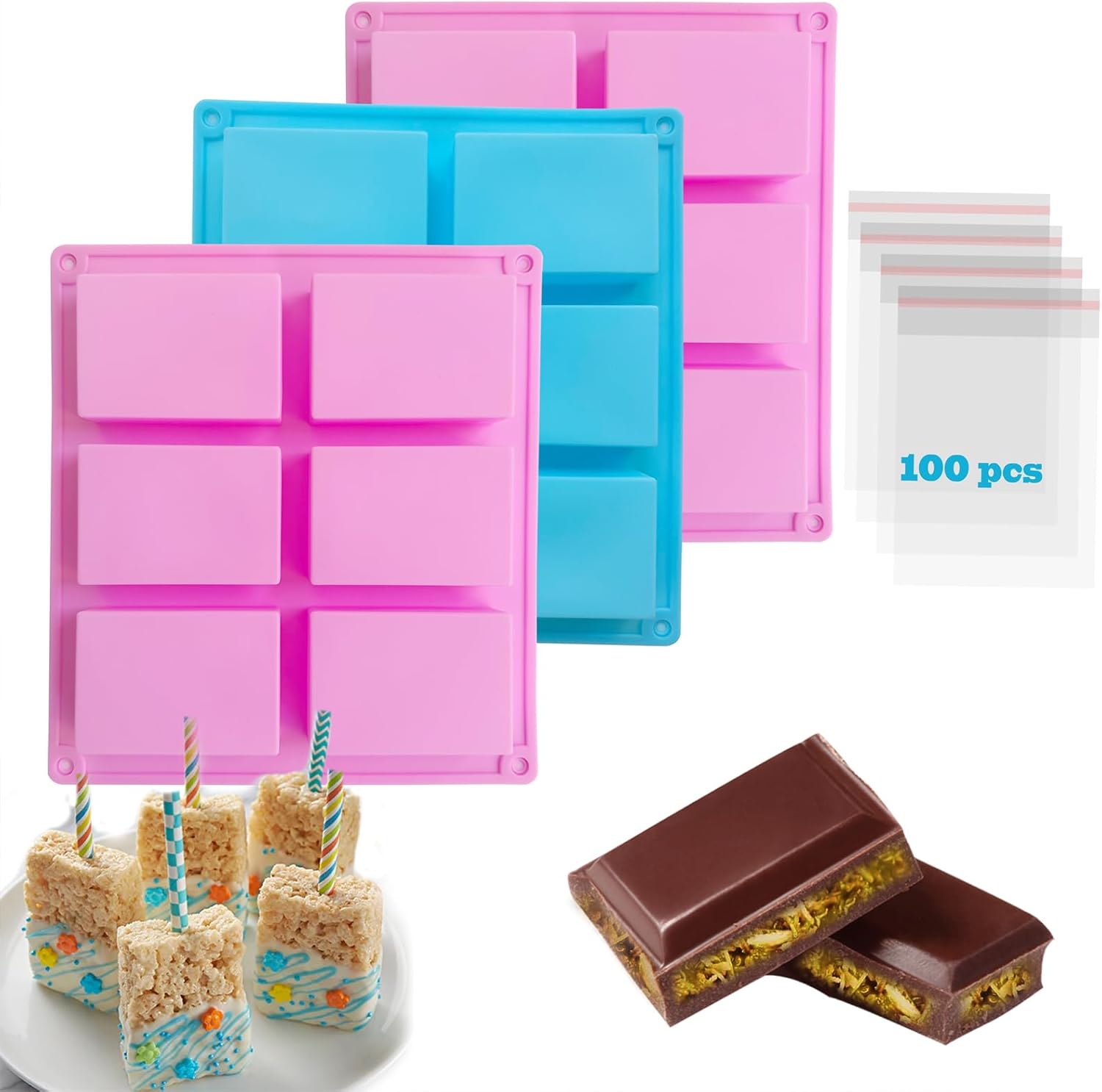 قوالب بسكويت مغطاة بالشوكولاتة من ، 6 قوالب حلوى مربعة من السيليكون لقنابل الدهون، قالب شوكولاتة ترافل للحلوى الصلبة، مكعبات الثلج