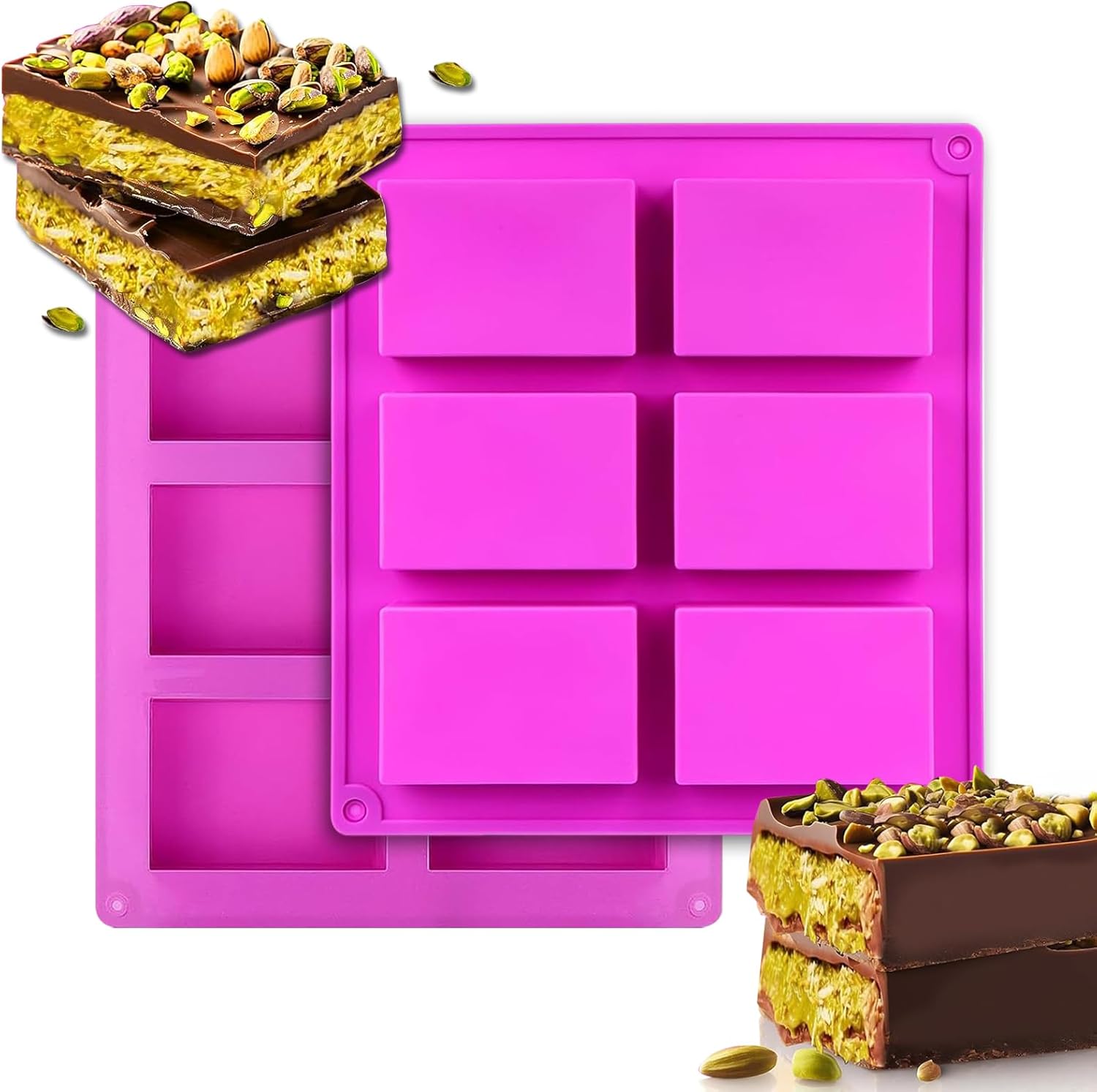 قالب شوكولاتة عميق، قالب شوكولاتة مستطيل دبي مكون من 6 تجويفًا لشريط الشوكولاتة مع كنافة بالفستق، قالب سيليكون كبير لحبيبات شوكولاتة أروز