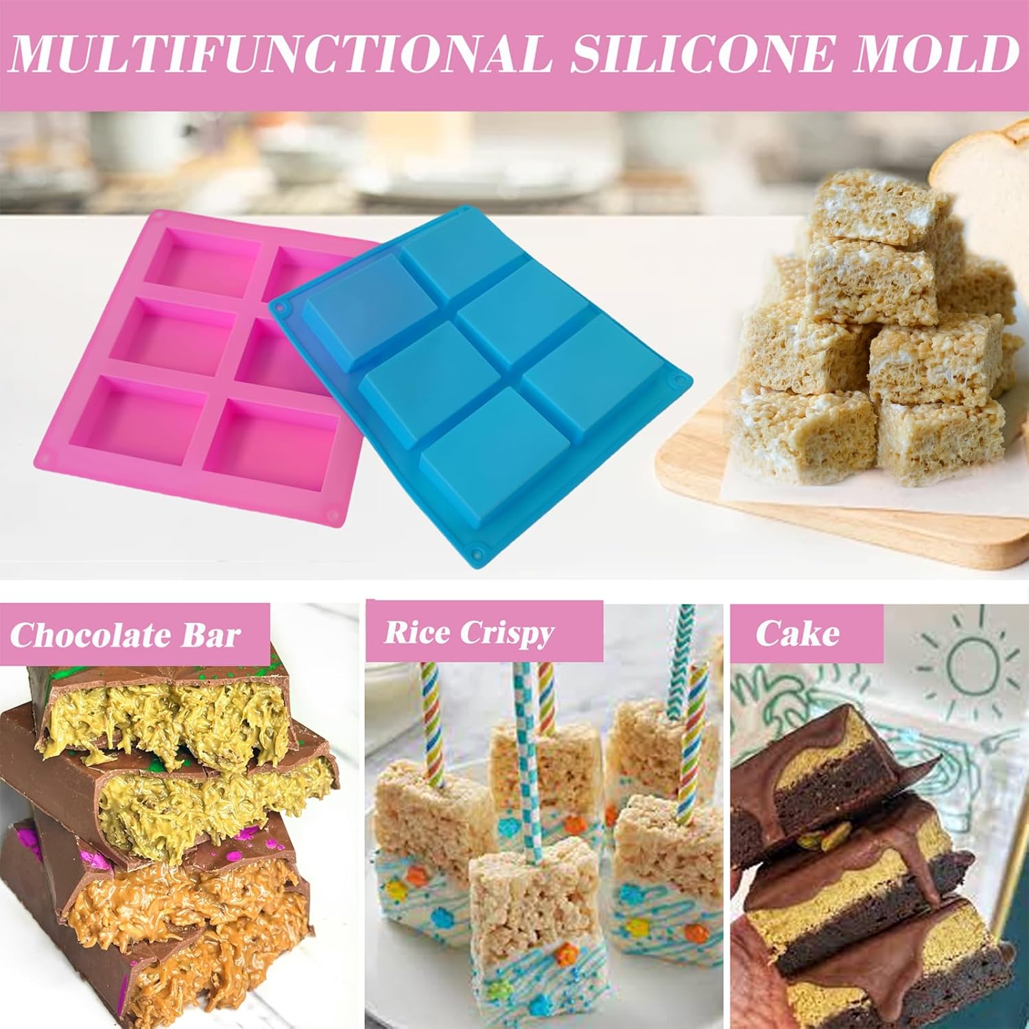 قوالب سيليكون مستطيلة كبيرة   مكونة من  12 قالب سيليكون لقضبان الجرانولا، قوالب ألواح الشوكولاتة، قوالب ألواح الشوكولاتة العميقة لقضبان الجرانولا والشوكولاتة وصانع ألواح الطاقة والمزيد
