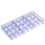 مصنوع من البولي كربونات الصالح للطعام؛ قوالب الشوكولاتة المصنوعة من البولي كربونات متينة وقوية وصلبة. وهذا يجعلها مثالية لصنع الشوكولاتة المحشوة.
