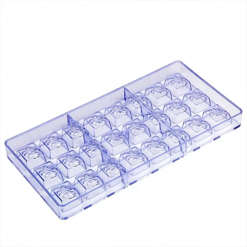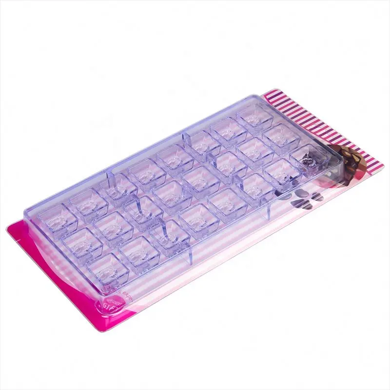 قالب شوكولاتة من البولي كربونات على شكل مربع ، أدوات صنع كعكة الشوكولاتة، قالب شوكولاتة بلاستيكي ثلاثي الأبعاد