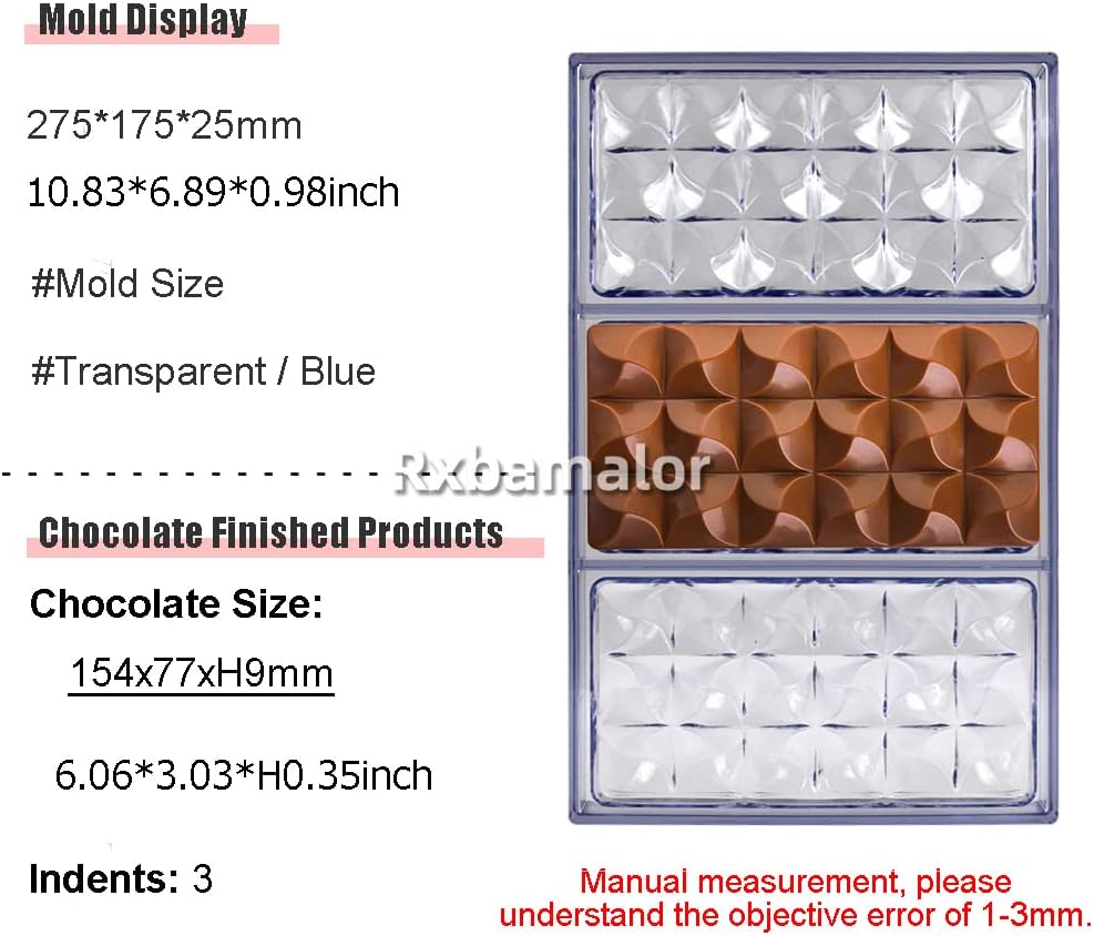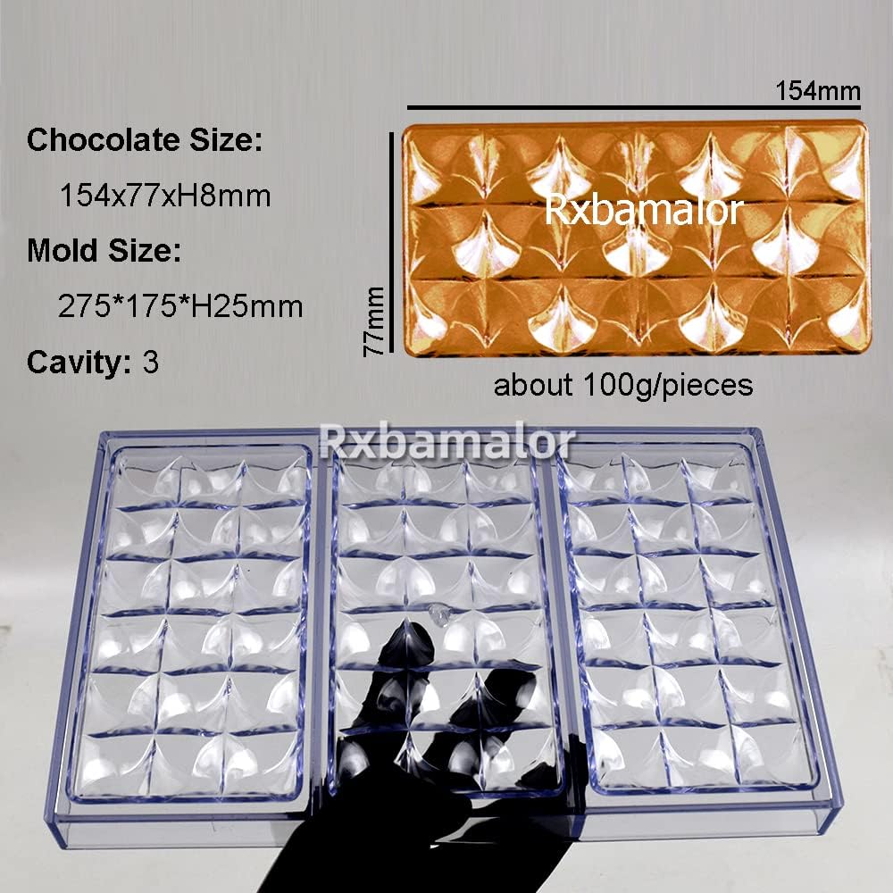 قالب شوكولاتة من البولي كربونات على شكل بار شوكولاتة MOULIN قالب حلوى بونبون 3 تجويف 154 * 77 * ارتفاع 9 مم