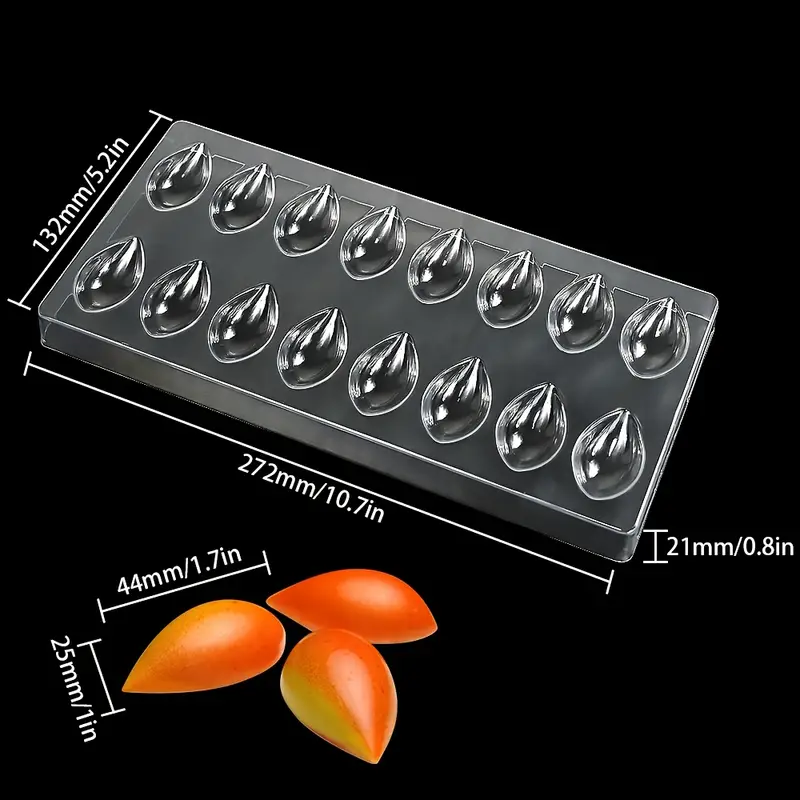 حجم التجويف: 4.5 × 2.5 × 1.25 سم / 1 3/4 × 1 × 1/2 بوصة (تقريبًا)، شوكولاتة نهائية بنسبة 12 جم للقطعة.