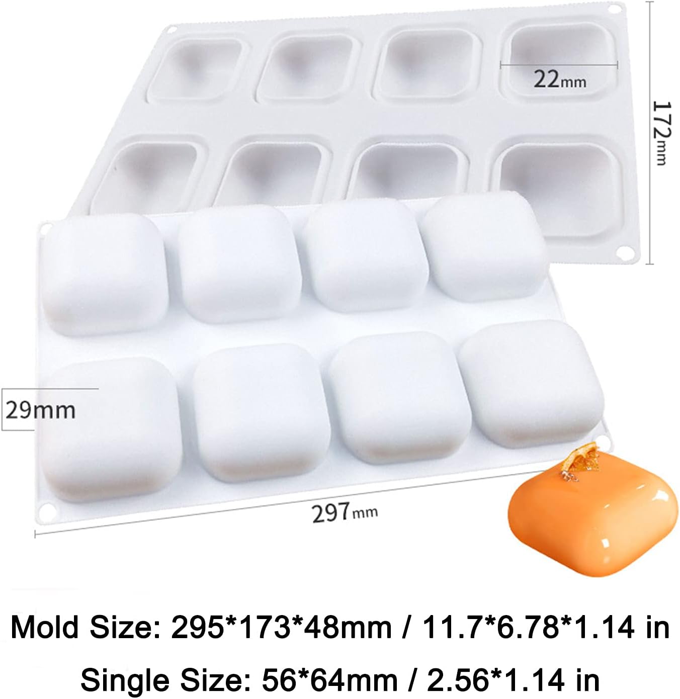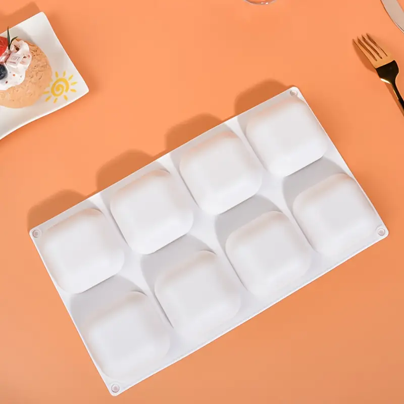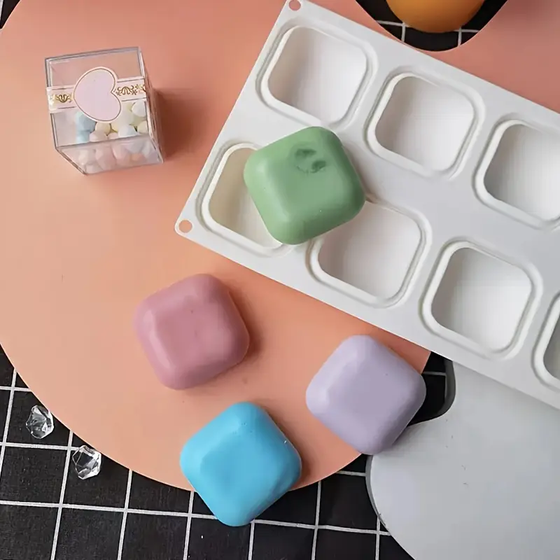 قالب صابون سيليكون بحافة مستديرة مربعة مكون من 8 تجاويف، قالب صابون تجميل