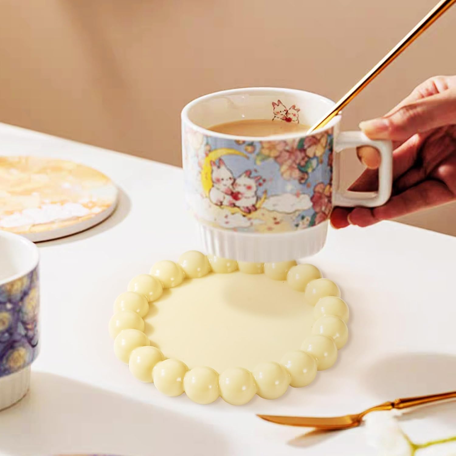 هدية ذات مغزى: هذه القوالب المصنوعة من الراتينج ليست مناسبة فقط لصنع قواعد أكواب من الراتينج، ولكنها أيضًا مثالية لقواعد أواني الزهور الصغيرة ومشاريع الطين البوليمري وما إلى ذلك. املأ القالب بالراتينج وأضف العناصر المفضلة لديك مثل أصباغ اللؤلؤ والزهور المجففة ومسحوق اللمعان والترتر والخرز الصغير لصنع قواعد أكواب مخصصة، وتحقيق فكرتك الرائعة عن المجوهرات والحرف اليدوية الفريدة.