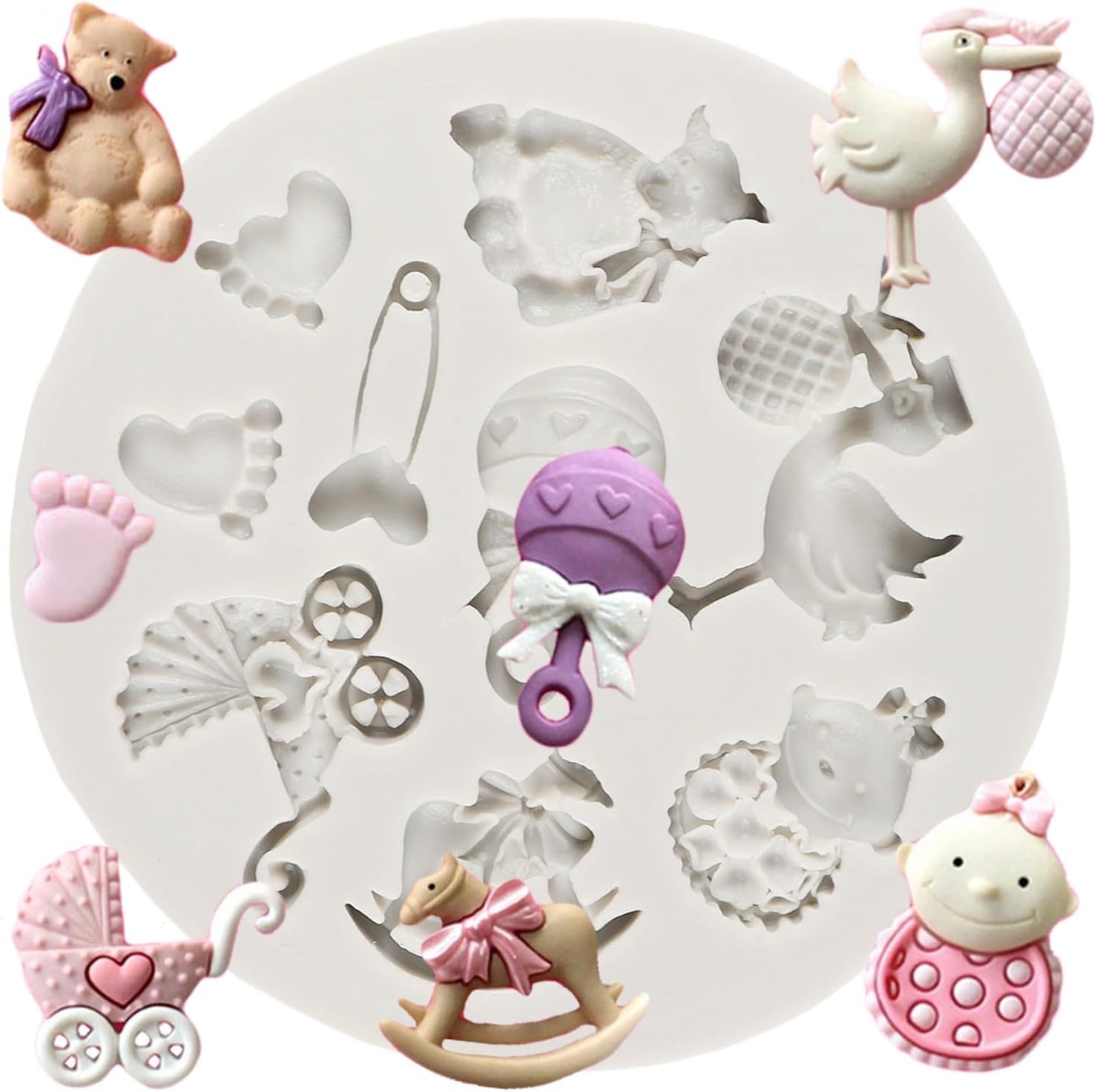 قالب سيليكون لحفلات استقبال الطفل، موضوع الكيك، حفلة عيد الميلاد، تزيين الكيك، زينة الكب كيك، الحلوى،…