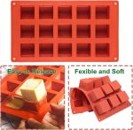 قالب سيليكون مستطيل كبير 15 تجويف موس كيك ، الشوكولاتة، الجيلي، والبودينغ
