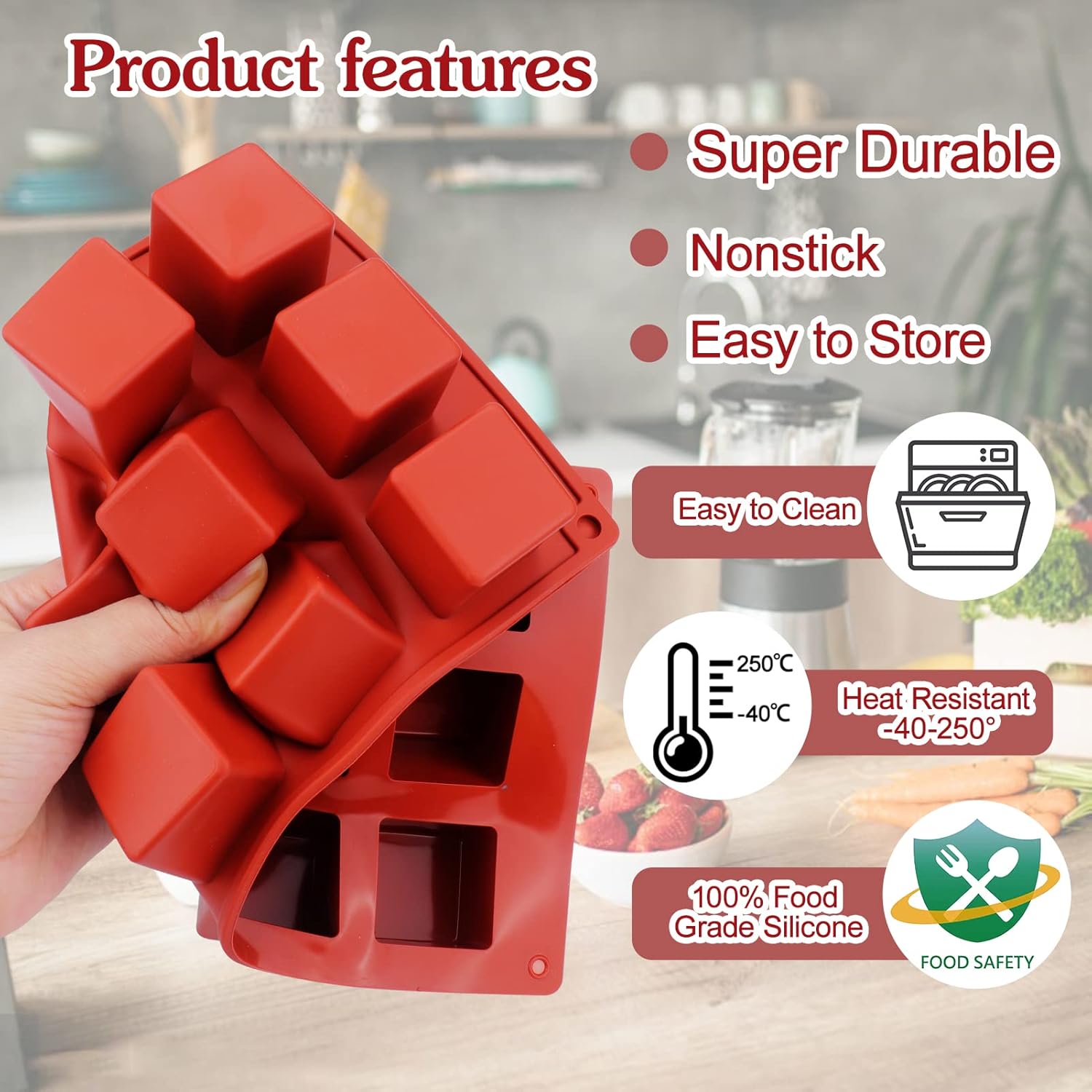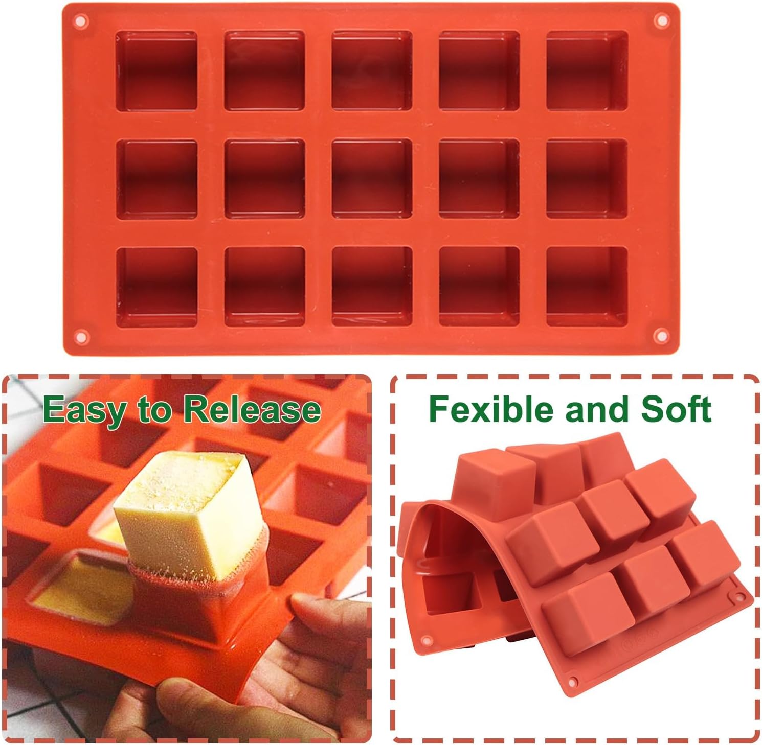 - سيليكون آمن غذائياً وقابل لإعادة الاستخدام: قالب قالب كيك مربع ثلاثي الأبعاد مصنوع من السيليكون الآمن غذائياً، خالٍ من البيسفينول، قابل لإعادة الاستخدام ويصعب تشويهه بسطح ناعم وصلابة فائقة. سيليكون آمن غذائيًا جيد لصحتك.