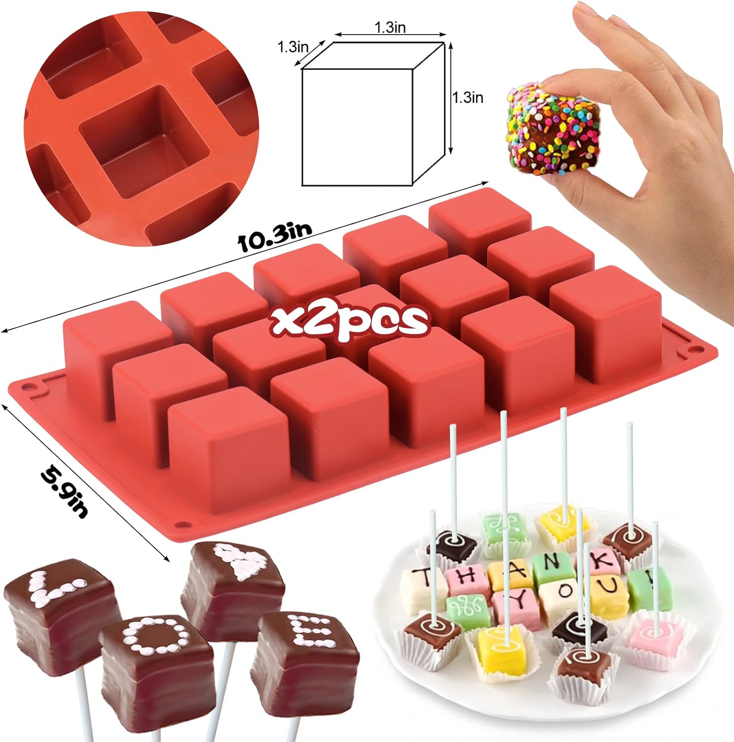 قالب كيك بوب مربع من السيليكون و15 قالب مصاصات تجويف لحلوى الشوكولاتة، صانع كيك بوبس لخبز المعجنات