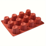 قالب كيك كانيللى سيليكون، صينية خبز غير لاصقة بـ 12تجويفًا لحلوى الشوكولاتة، قالب معجنات يدوي الصنع، بني، مادة سيليكون متينة، مثالي للخبز والتزيين، أدوات خبز | قالب خبز سيليكون | قالب مرن
