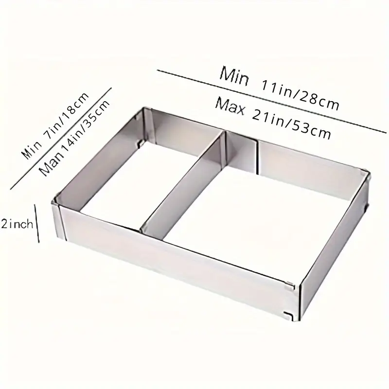 قالب كيك موس مرن قابل للتعديل من الفولاذ المقاوم للصدأ على شكل مستطيل مقاس 11 – 21 بوصة، مناسب لحفلات أعياد الميلاد وخبز التيراميسو والمعجنات، وأدوات الخبز