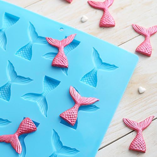قالب كيك وفوندان غير لاصق من السيليكون شكل ديل السمكه حورية البحر، قالب شوكولاتة وجيلي وحلوى لتزيين خبز الكب كيك بنفسك، 16 تجويف