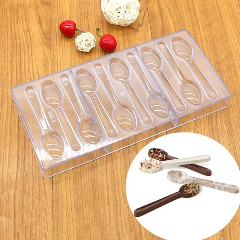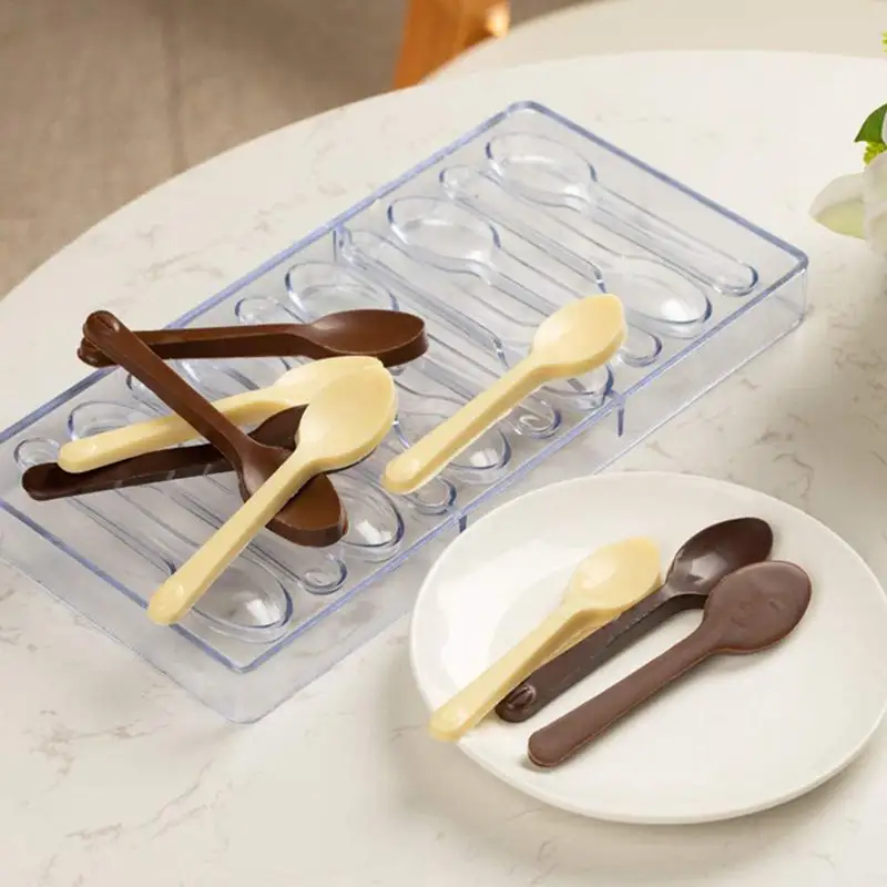 قالب شوكولاتة من الاكريليك بولي كربونات شكل (شكل وردة) ملاعق، مناسب للتجميد، قالب كراميل من البولي كربونات الشفاف، سهل التحرير، متدرج