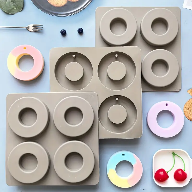 قالب سيليكون فواحات مدور 4 تجويفات لعمل الصابون وفواحات