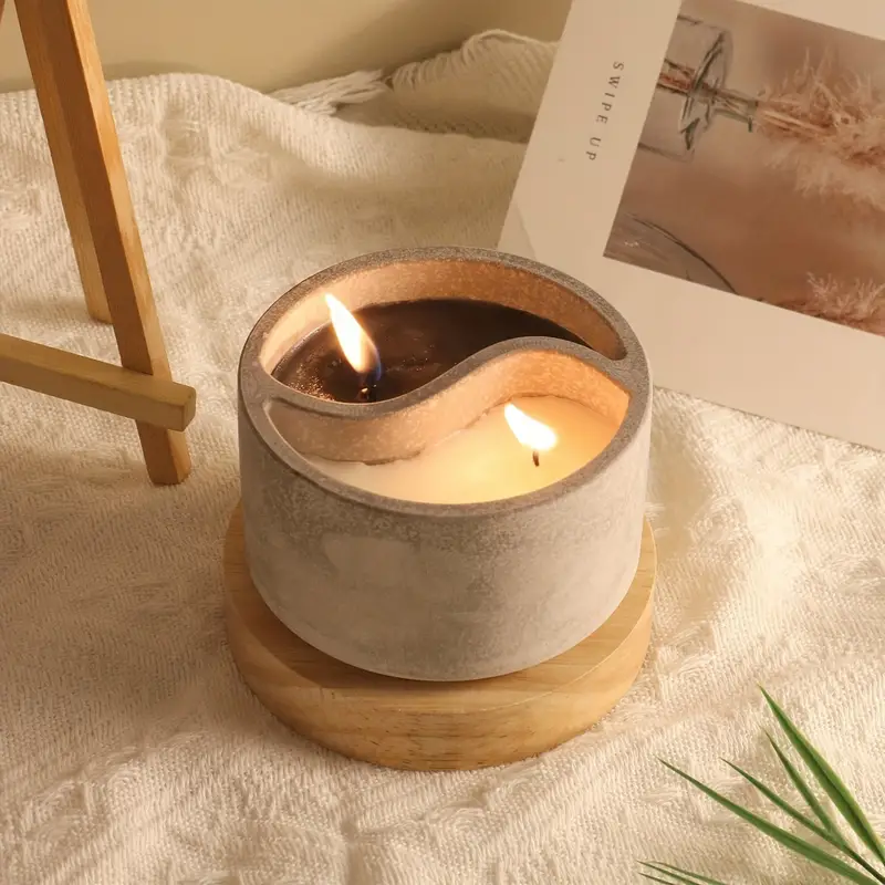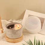قالب سيليكون كونكريت قلب نصفين حامل شموع ،