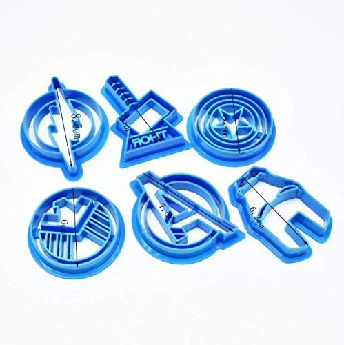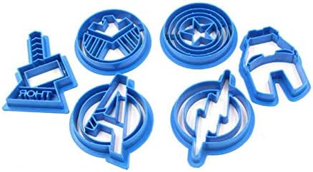 قطاعات العجين المكونة من 6 قطع لقطاعة عجينة السكر لتزيين الكيك ذي الطابع الخاص، كابتن أمريكا، الرجل الحديدي، ثور، ودرع فلاش
