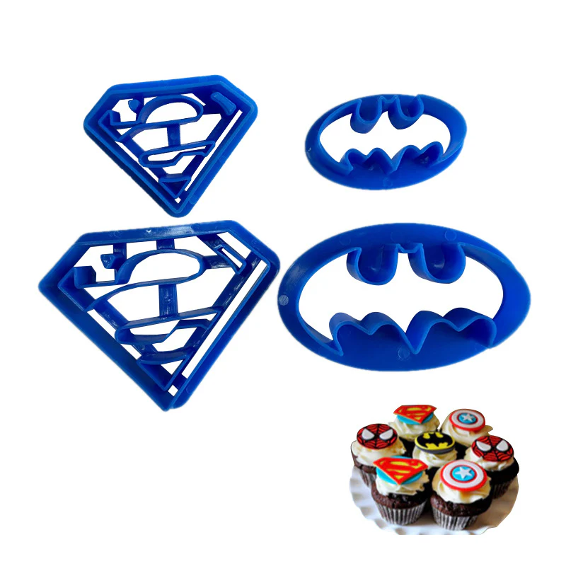 قطاعات بلاستيك 4 قطع شكل سوبر هيرو باتمان سوبرمان ادوات تزيين الكيك وكب كيك