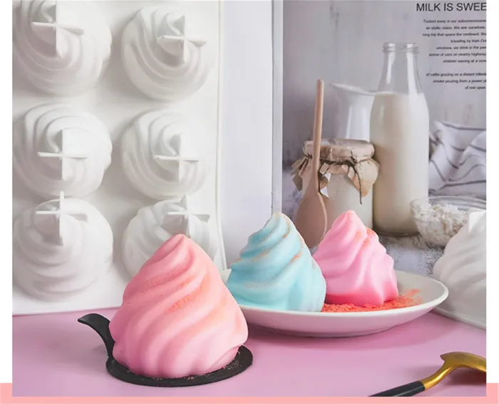 قالب سيليكون بوله الآيس كريم الحلزونية ذات 6 قطع للموس كيك حفلات الصيف شبلونه موس كيك