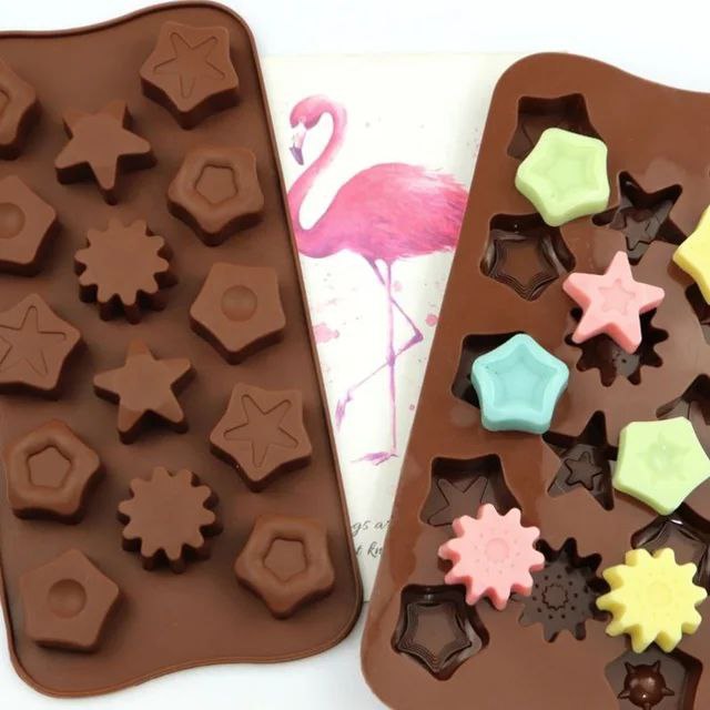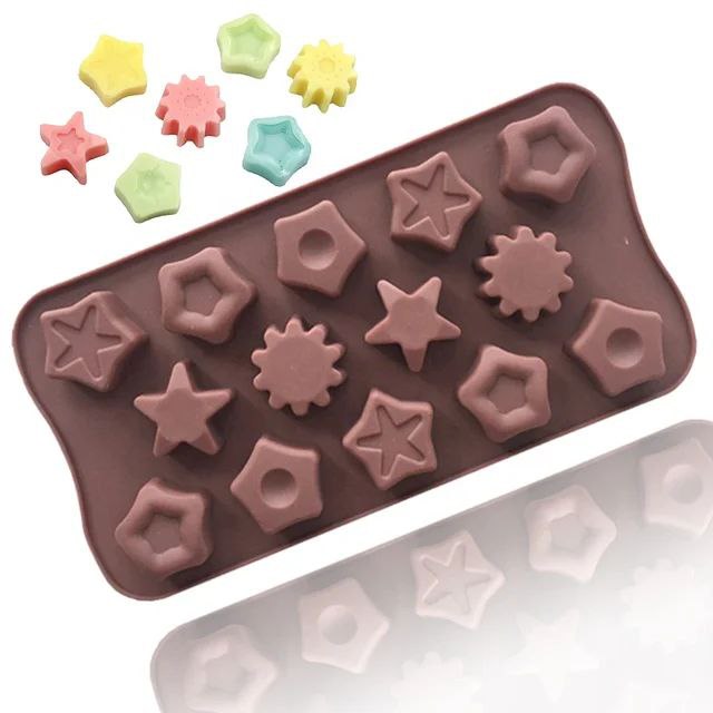 قالب سيليكون الشوكولاتة للكيك، وزينة البراوني والجيلي اشكال، قلوب، ونجوم، وزهور، ورموز تعبيرية،