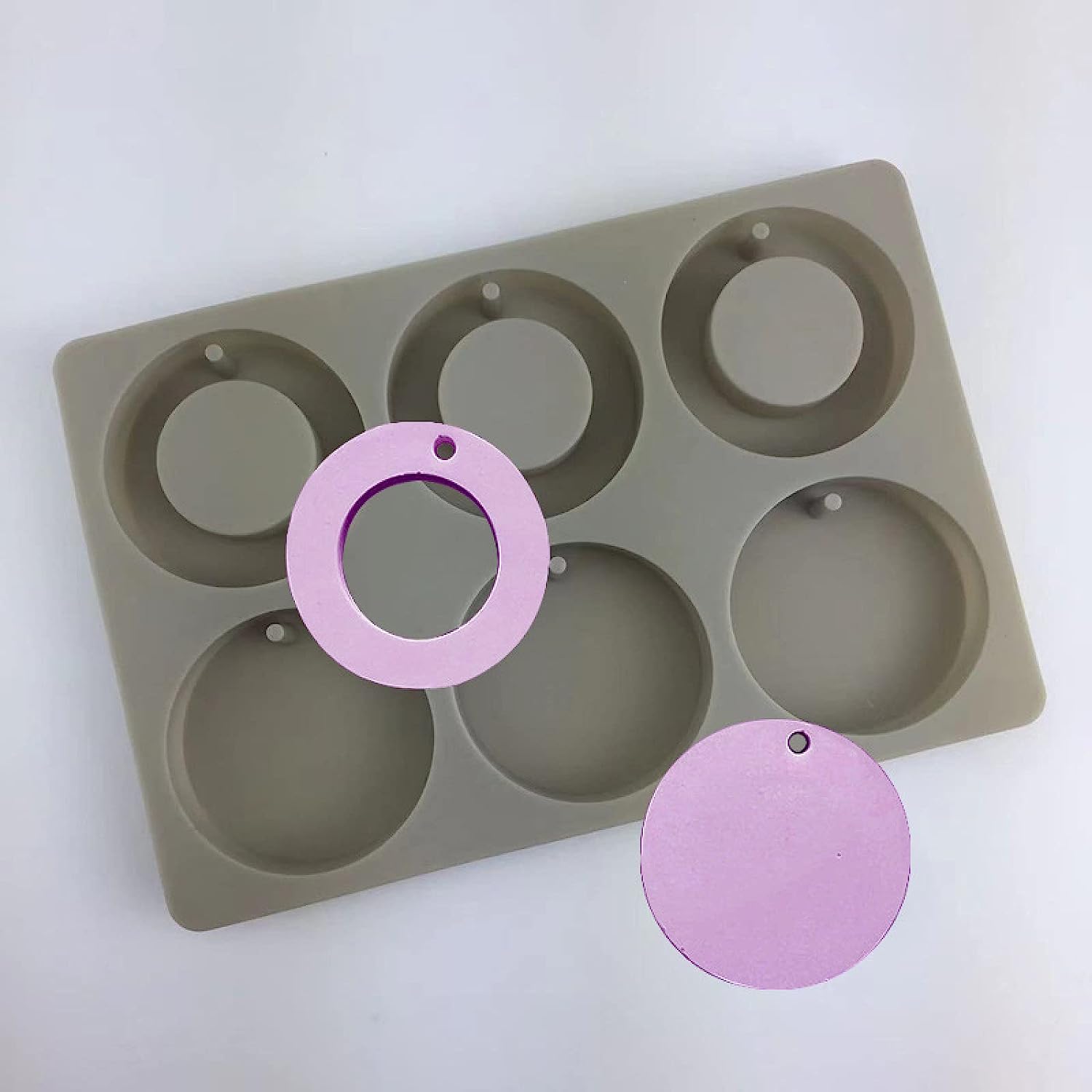 قوالب دائرية من السيليكون لصنع الشمع والراتنج والمجوهرات مع ثقب للتعليق للاشغال اليدوية وصنع المجوهرات من كوتيبس فواحات
