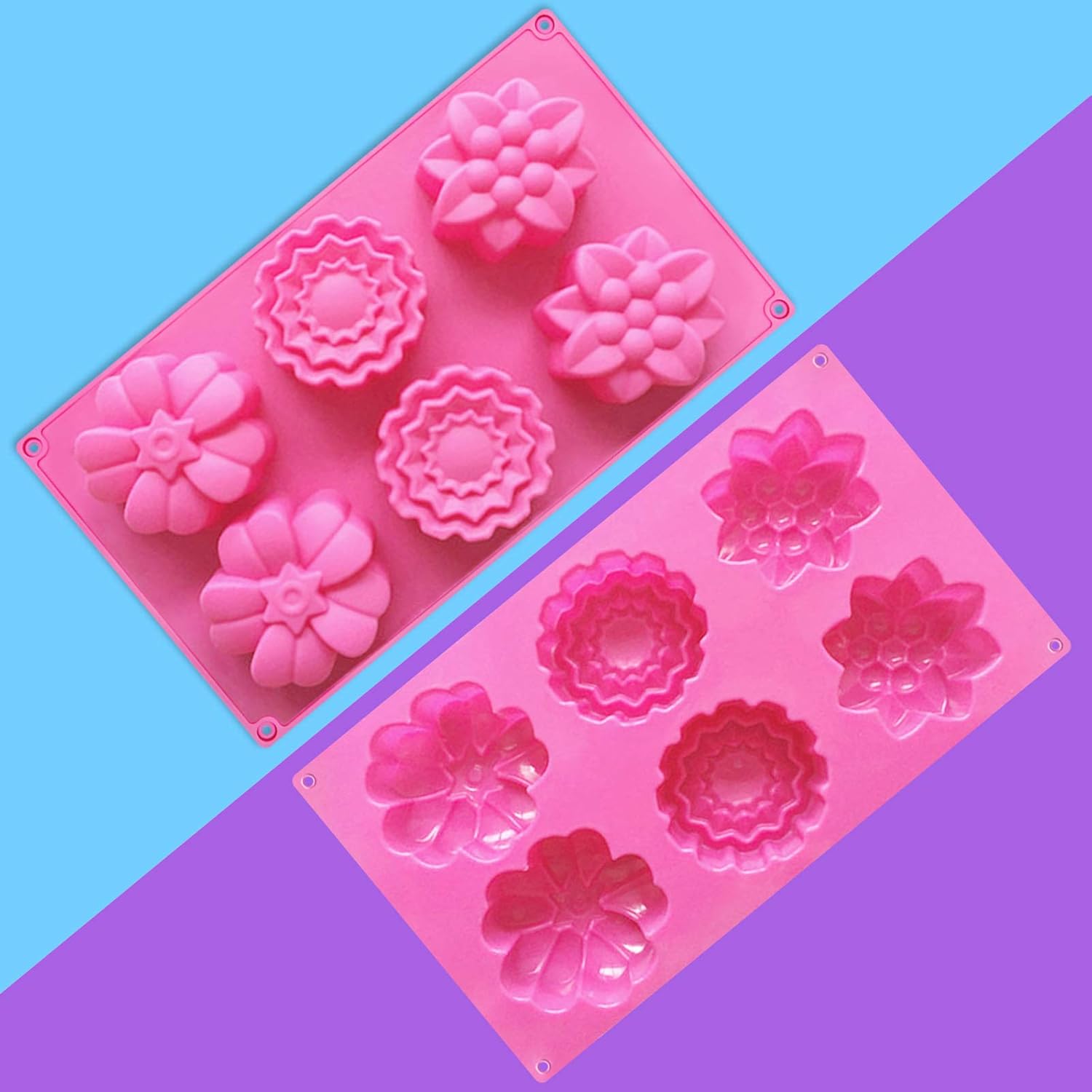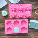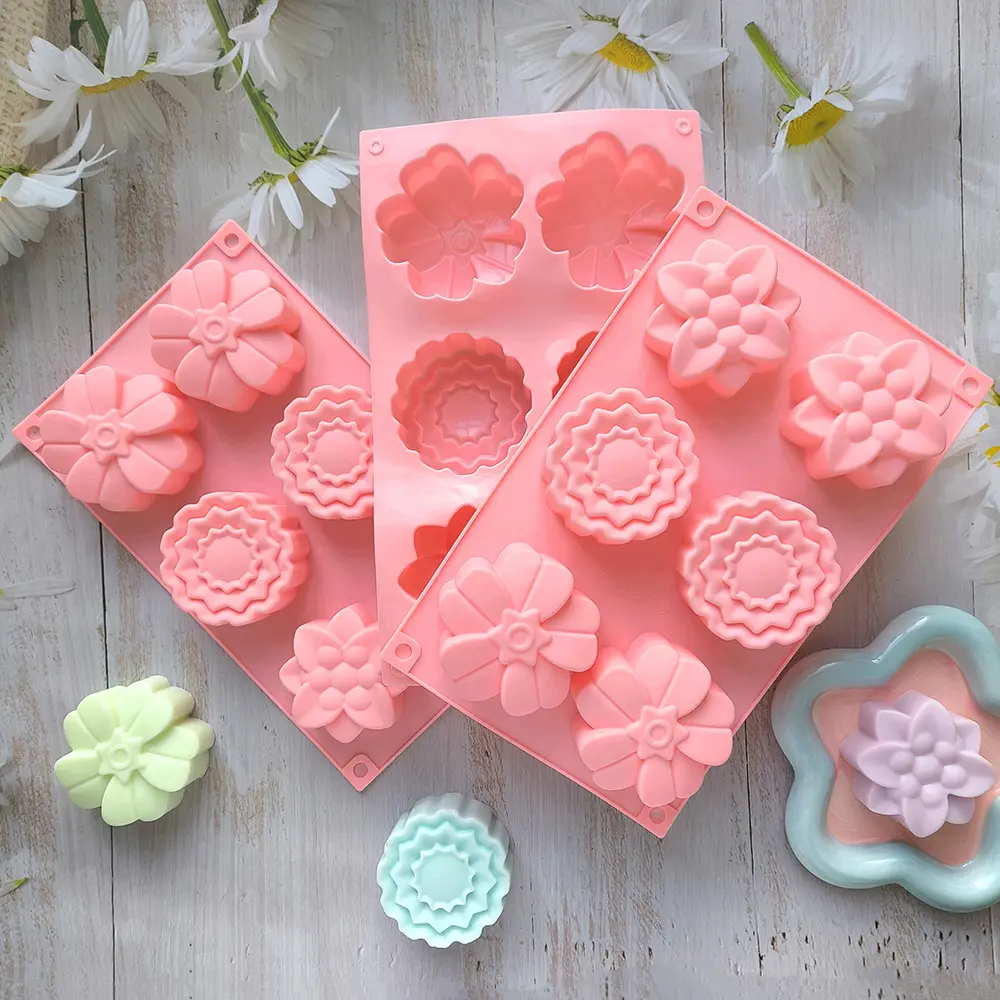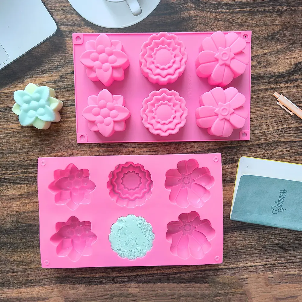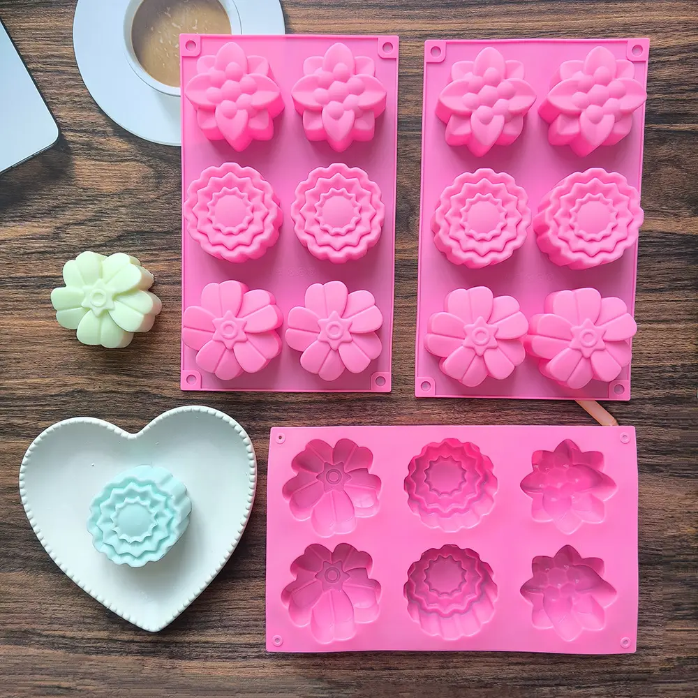 قالب سيليكون بـ 6 عيون دائرية اشكال زهور ، مناسبة للصابون المصنوع يدويًا والخبز والكيك والشوكولاتة والحرف اليدوية المنزلية
