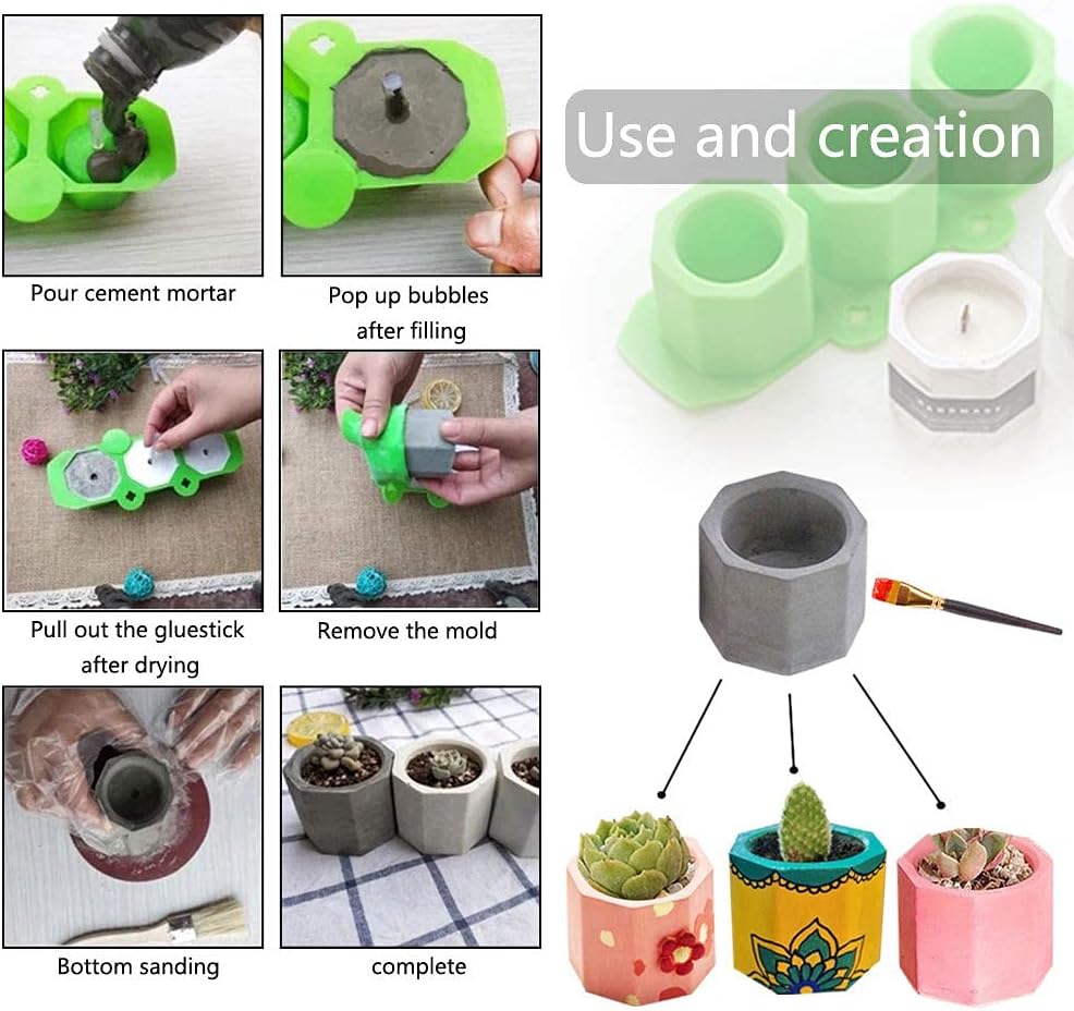 قوالب سيليكون كونكريت ووعاء الزهور ومزهرية لزراعة النباتات بنفسك للشموع والنباتات (بوت سداسى)
