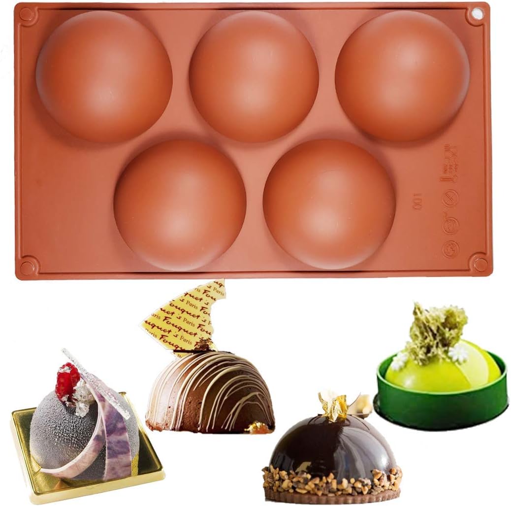 قوالب سيليكون هاف بول، نصف كروي ، شوكولاتة ساخنة ، كيك جيلي ، قالب موس قبة ، كبير جدًا ، 5 تجويف