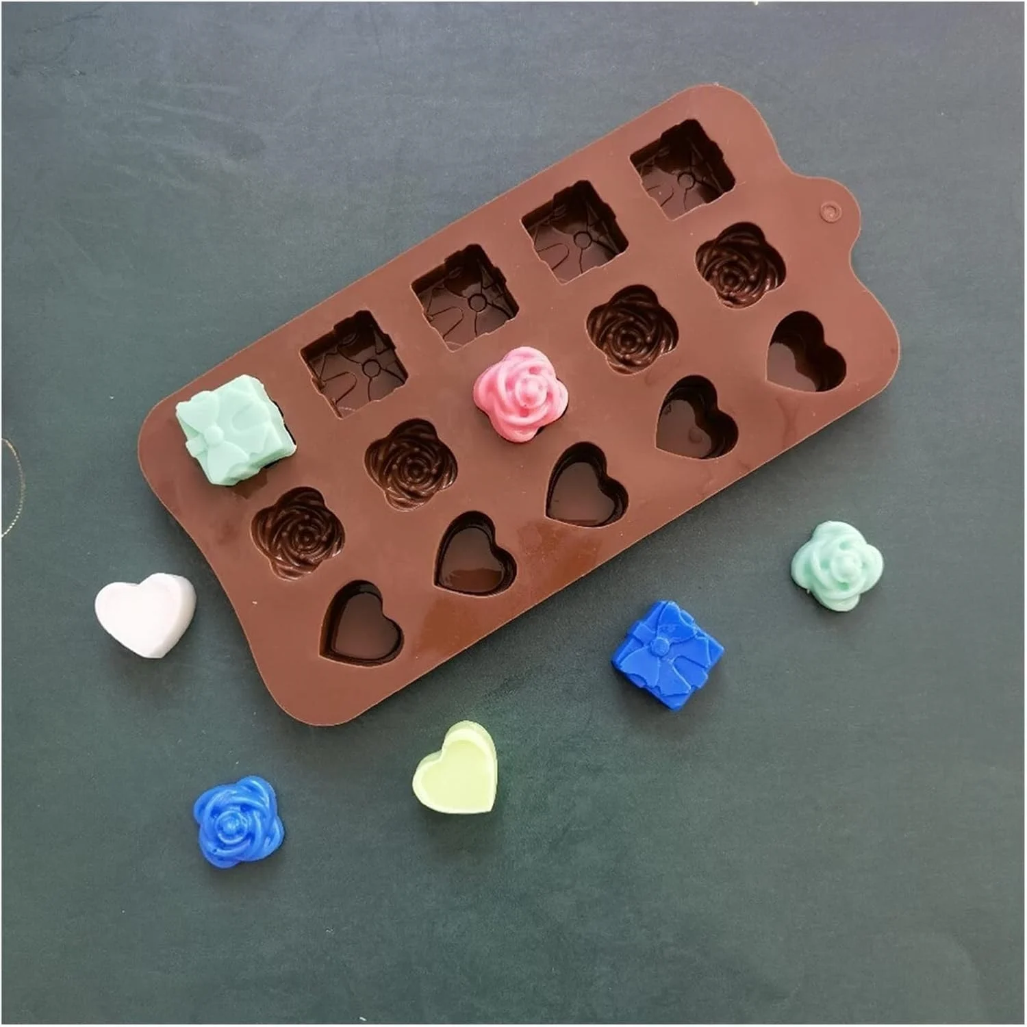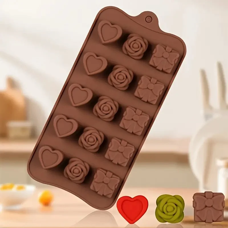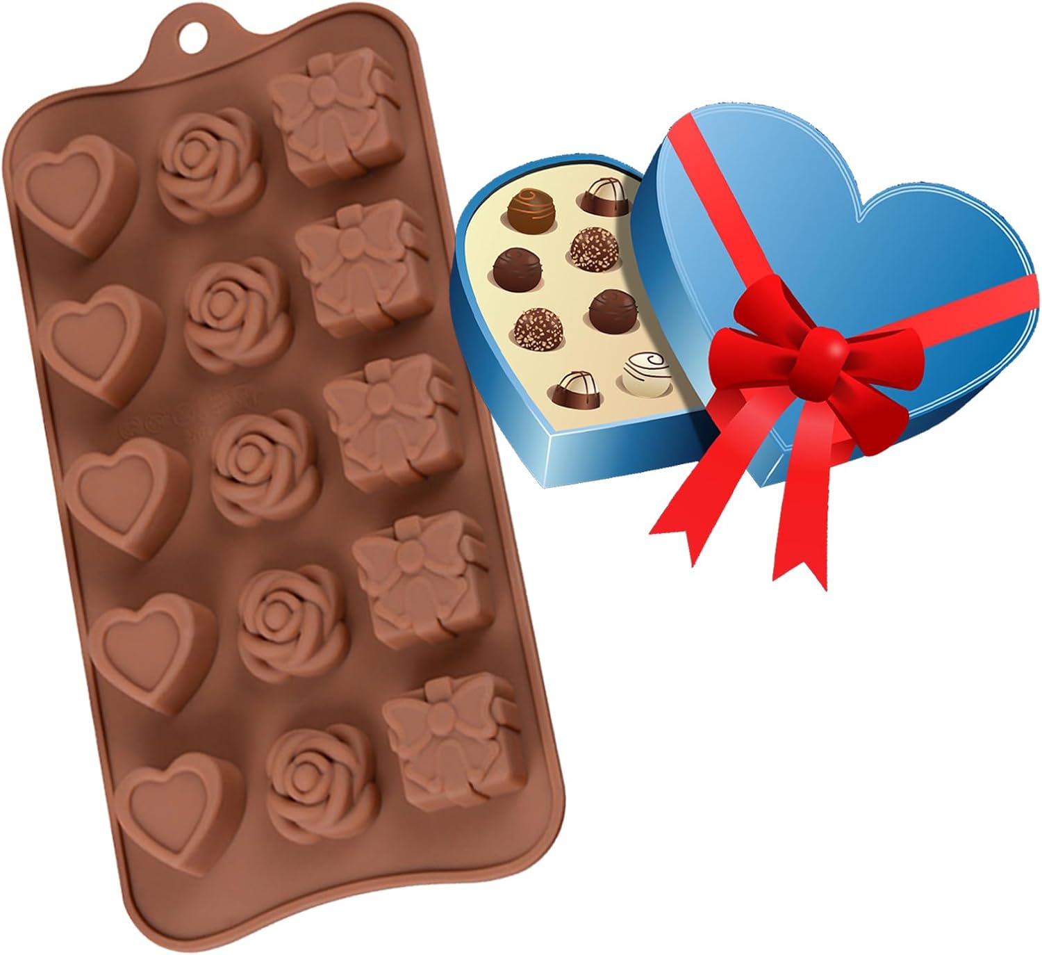 قالب سيليكون للشوكولاتة والحلوى الجيلاتينية، 5 قطع على شكل قلب، 5 قطع على شكل وردة، 5 قطع على شكل هدية، 21×10.5 سم، لوكسر