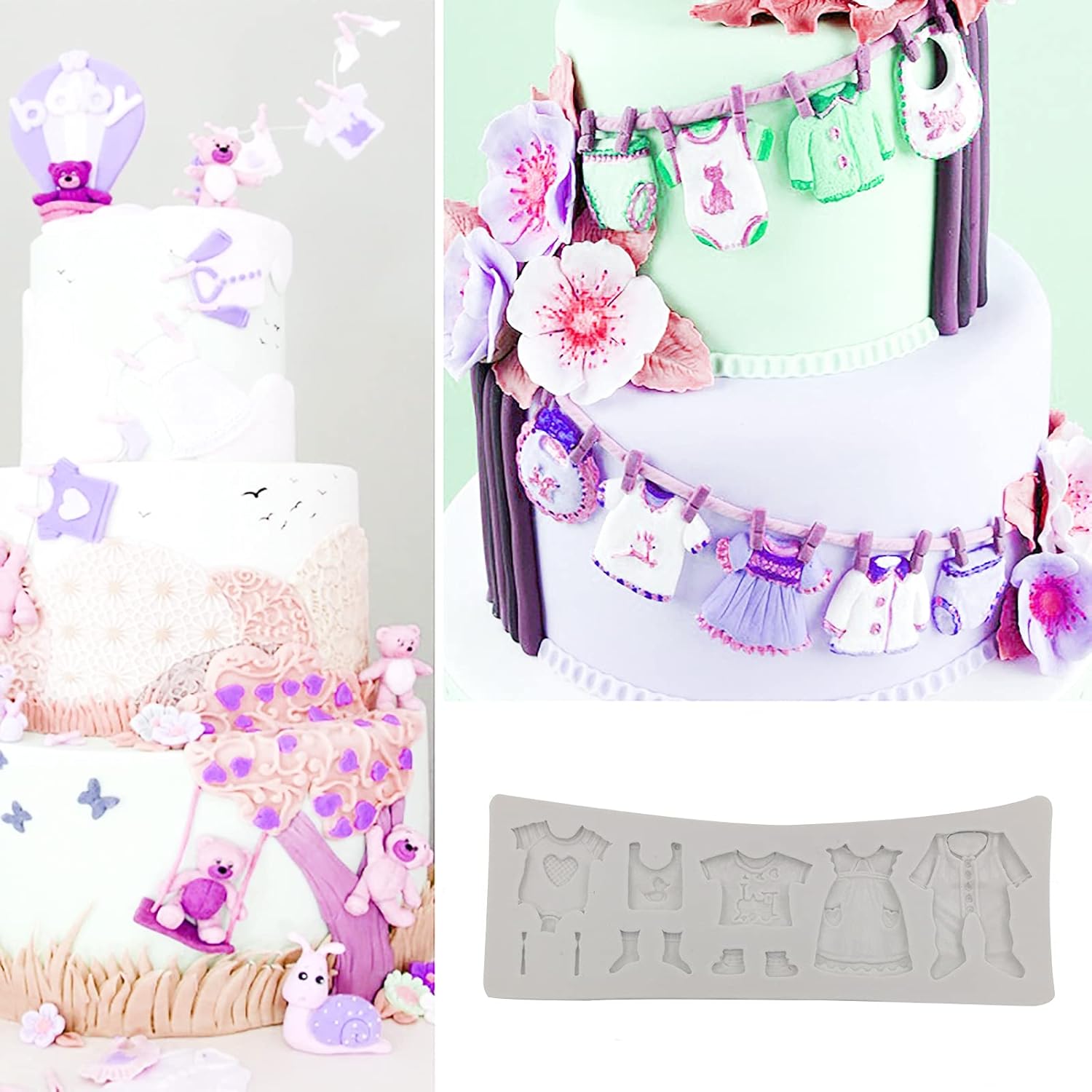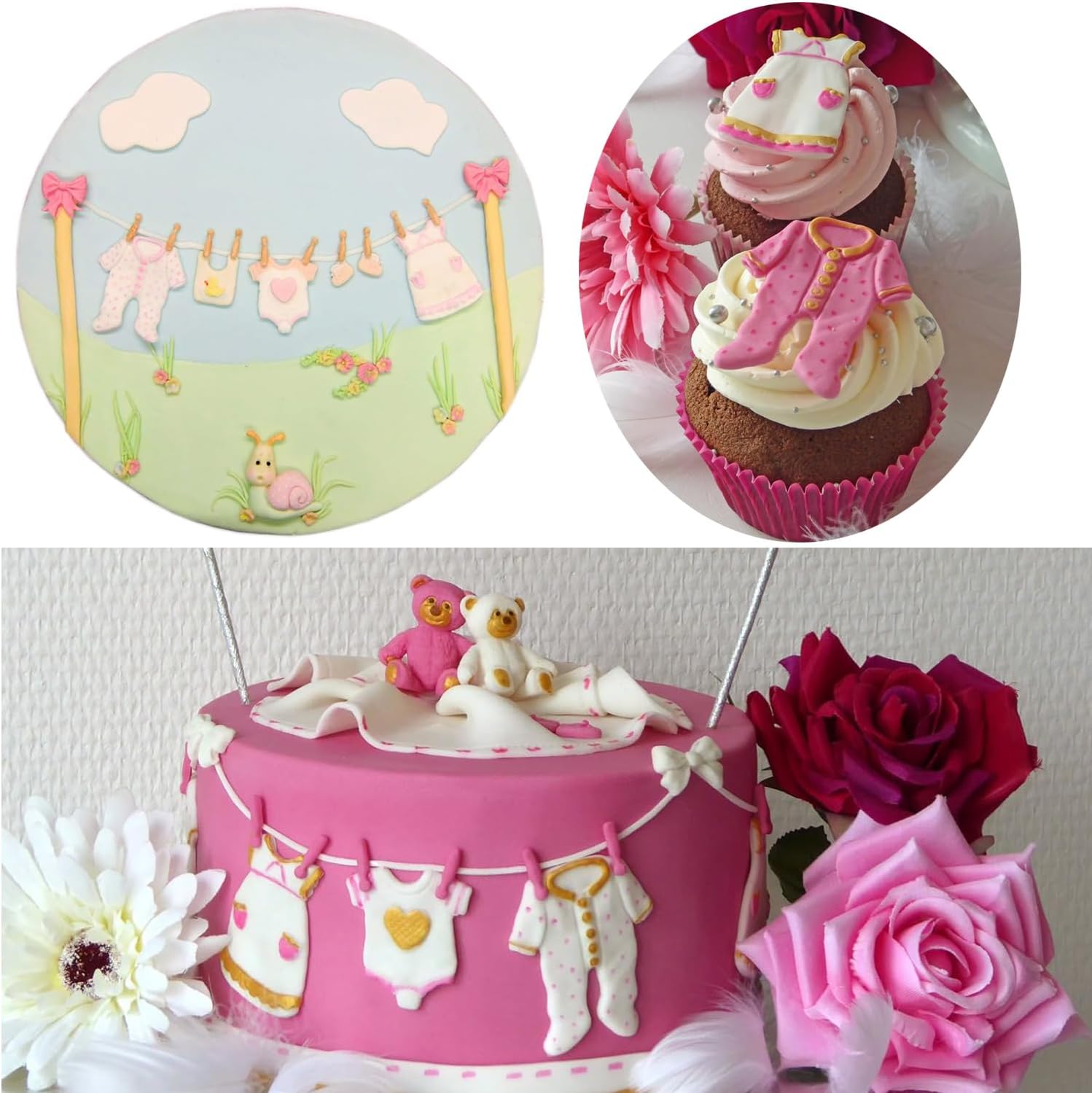 【هدايا مثالية】: يتميز قالب ملابس الأطفال بتصميم لطيف. تم تصميم قوالب الحلوى لحفلات استقبال الطفل هذه لنفسك أو كهدية للعائلة أو الأصدقاء، وسيسمح لك أسلوبها الأنيق بجلب الجودة الاحترافية إلى عملك. يمكنك الاستمتاع بظهيرة جميلة بتزيين الكعكة مع أصدقائك أو أطفالك.