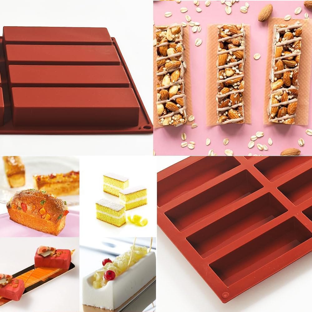 تستخدم على نطاق واسع: قوالب بار الشوكولاتة العميقة مثالية لصنع ألواح الحبوب وألواح الشوكولاتة وألواح الطاقة، ومناسبة أيضًا للبسكويت والآيس كريم والبودنج أو أي شيء تريد صنعه. سواء كنت تخبز أو تجمد – فإن قوالب البار المصنوعة من السيليكون هذه هي الخيار الأمثل