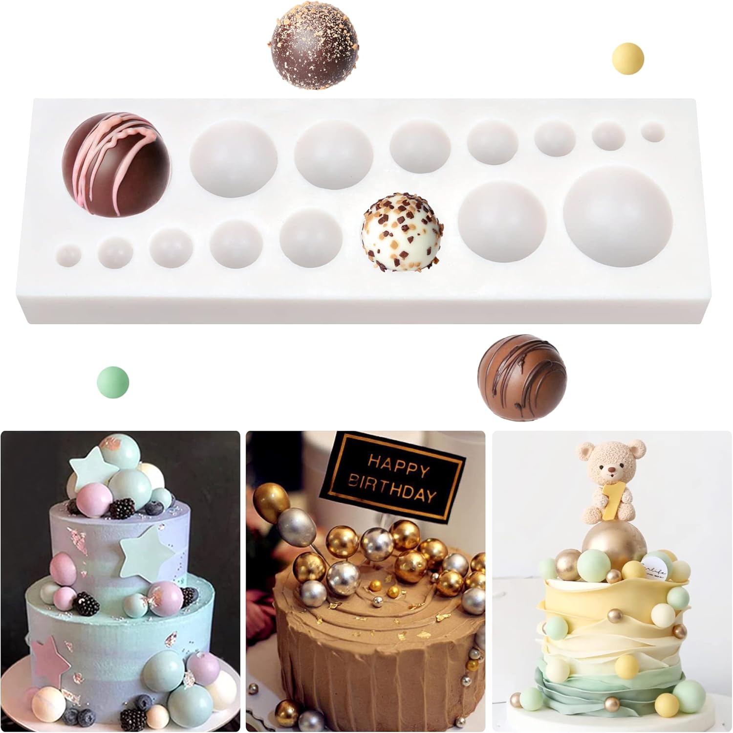 قطعة واحدة، قالب سيليكون على شكل إكليل بالونات ، قالب شوكولاتة، قالب حلوى كاواي لطيف، قالب عجينة السكر بابلز نصف كور، قالب بسكويت، لأداة تزيين الكيك بنفسك، أدوات خبز، أدوات مطبخ