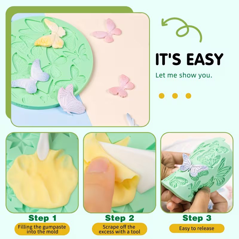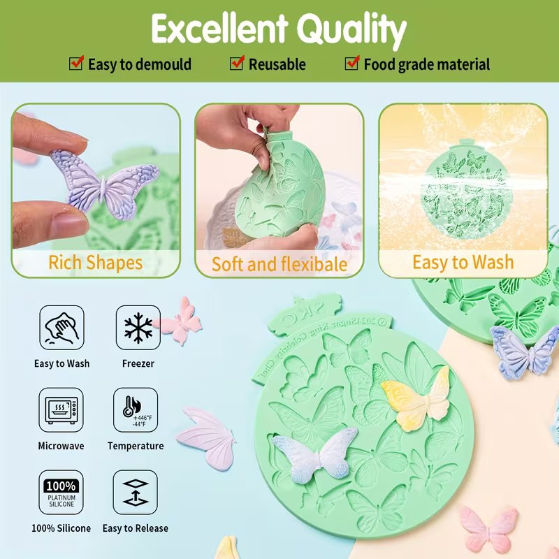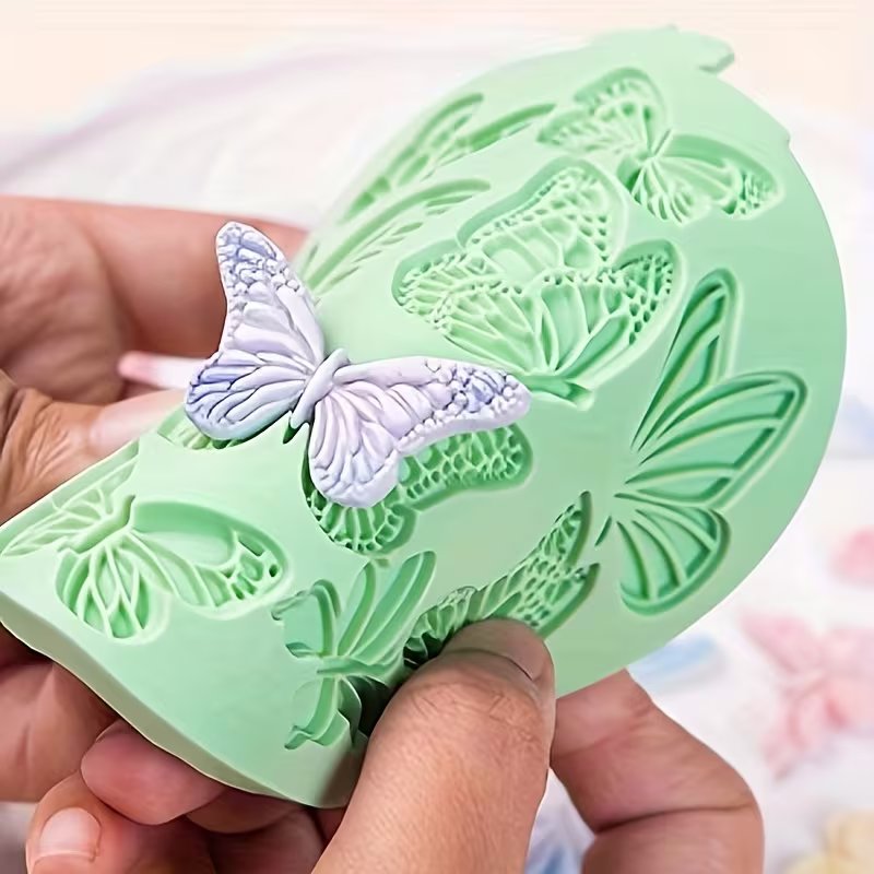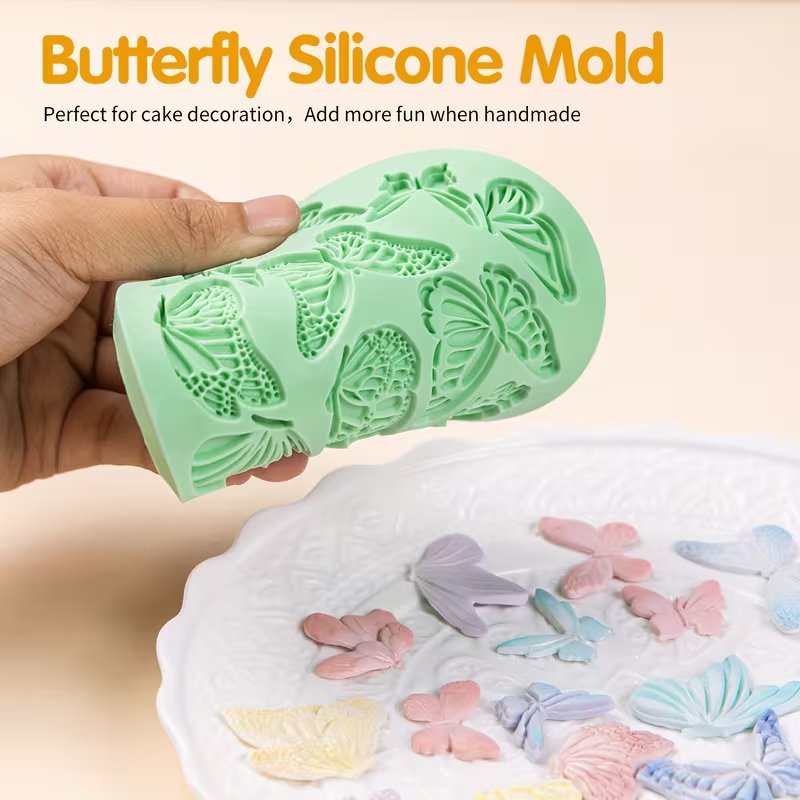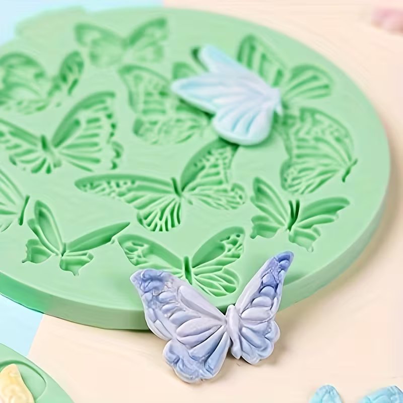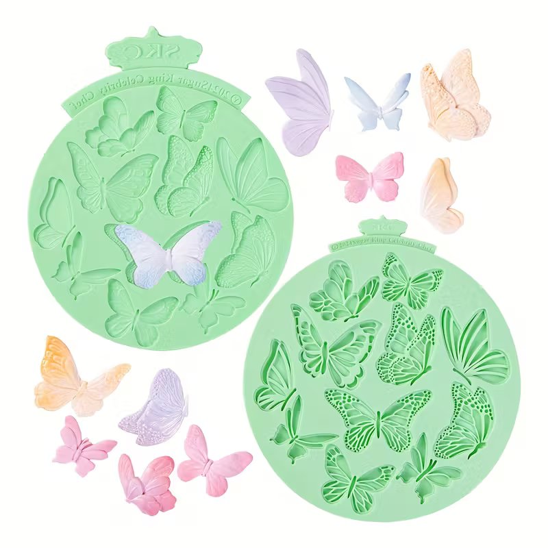قوالب سيليكون نقشة فراشات سادة ومنقوش لعجينة السكر والشوكولاته تزين كيك والكب كيك تزين شموع صابون