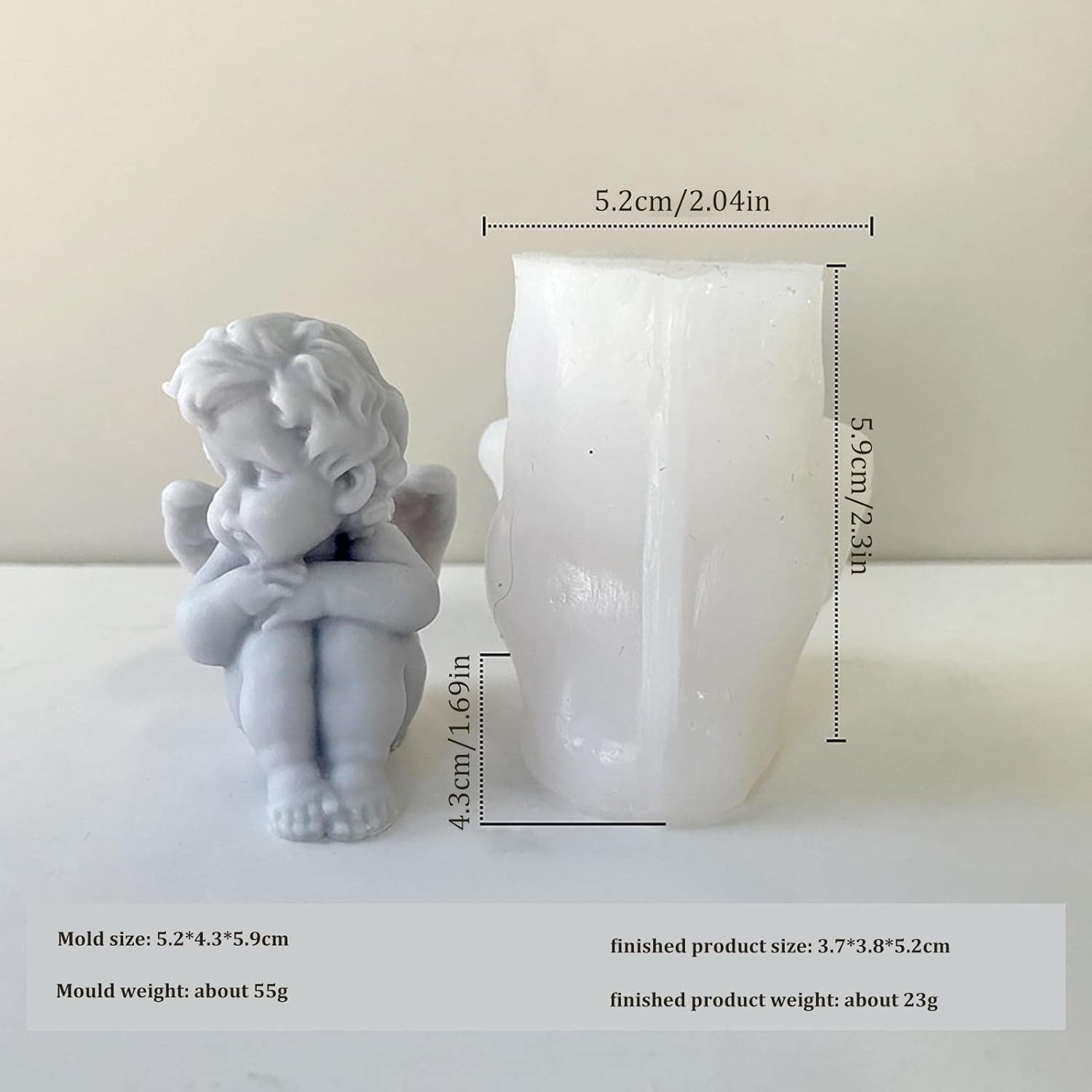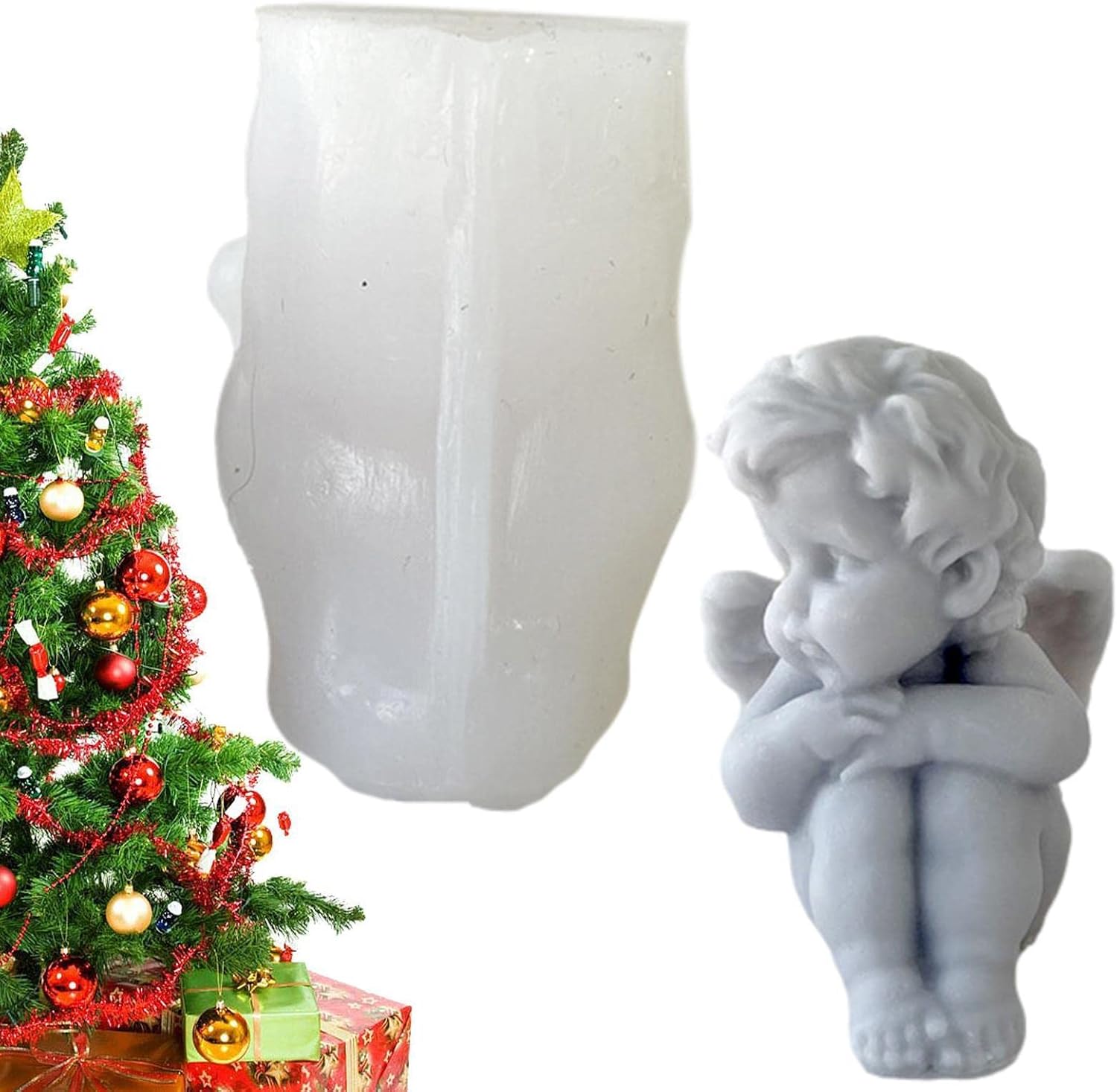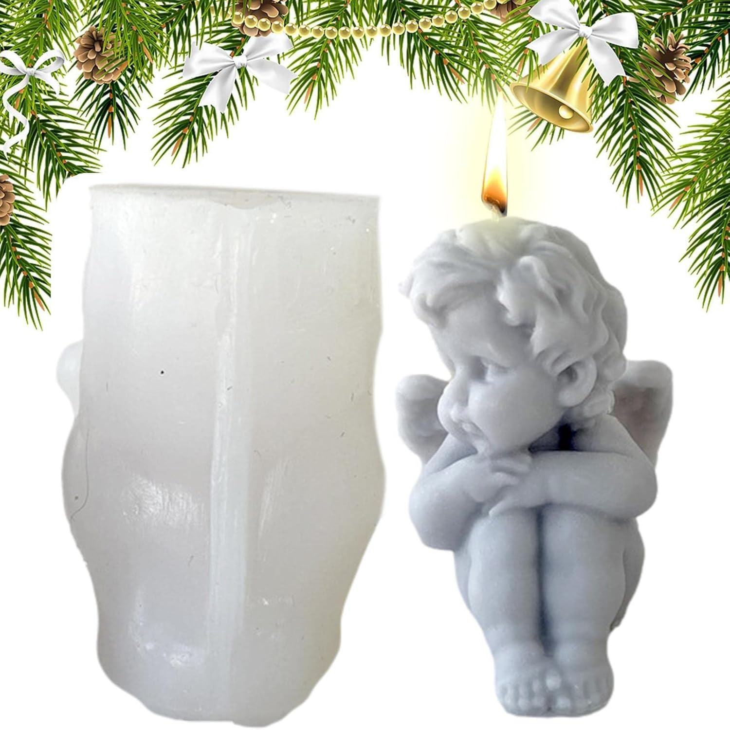 قالب شمعة ملاك ثلاثي الأبعاد، قالب شمعة سيليكون على شكل ملاك صغير من الراتينج، قالب زينة طاولة منزلية بزاوية لصنع الشموع وكعكة العلاج بالروائح العطرية، قالب خبز الفوندان