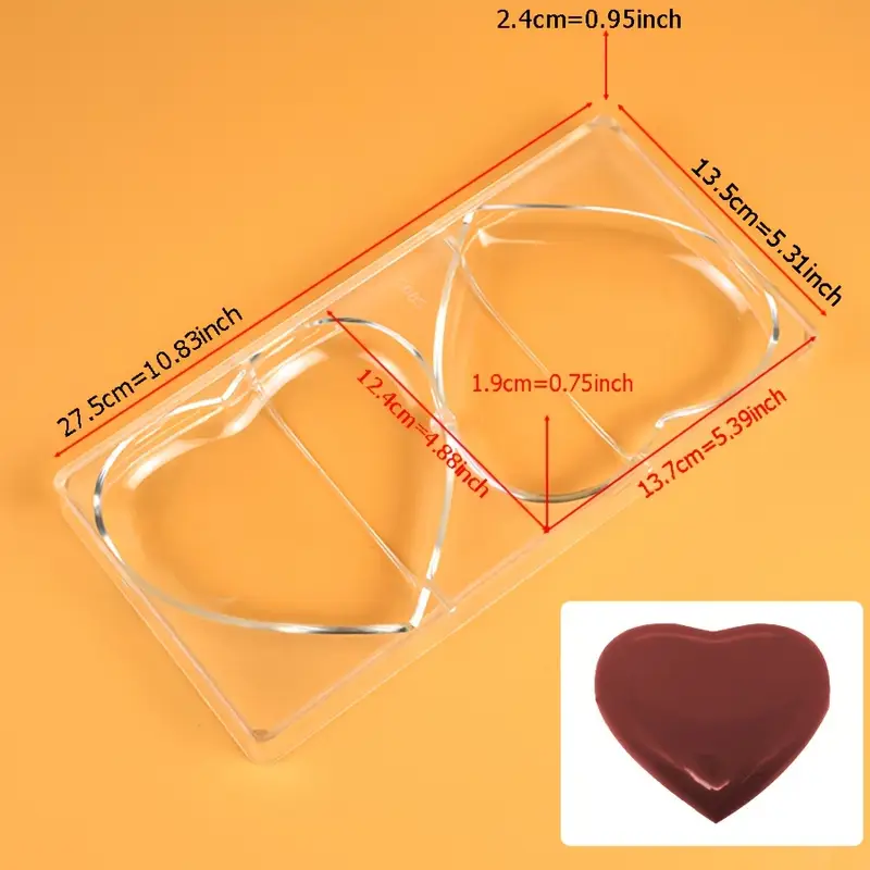 قالب شوكولاتة من الاكريليك بولي كربونات شكل 2 قلب كبير لعيد الحب ، بولي كربونات ، للشوكولاتة ، الحلوى