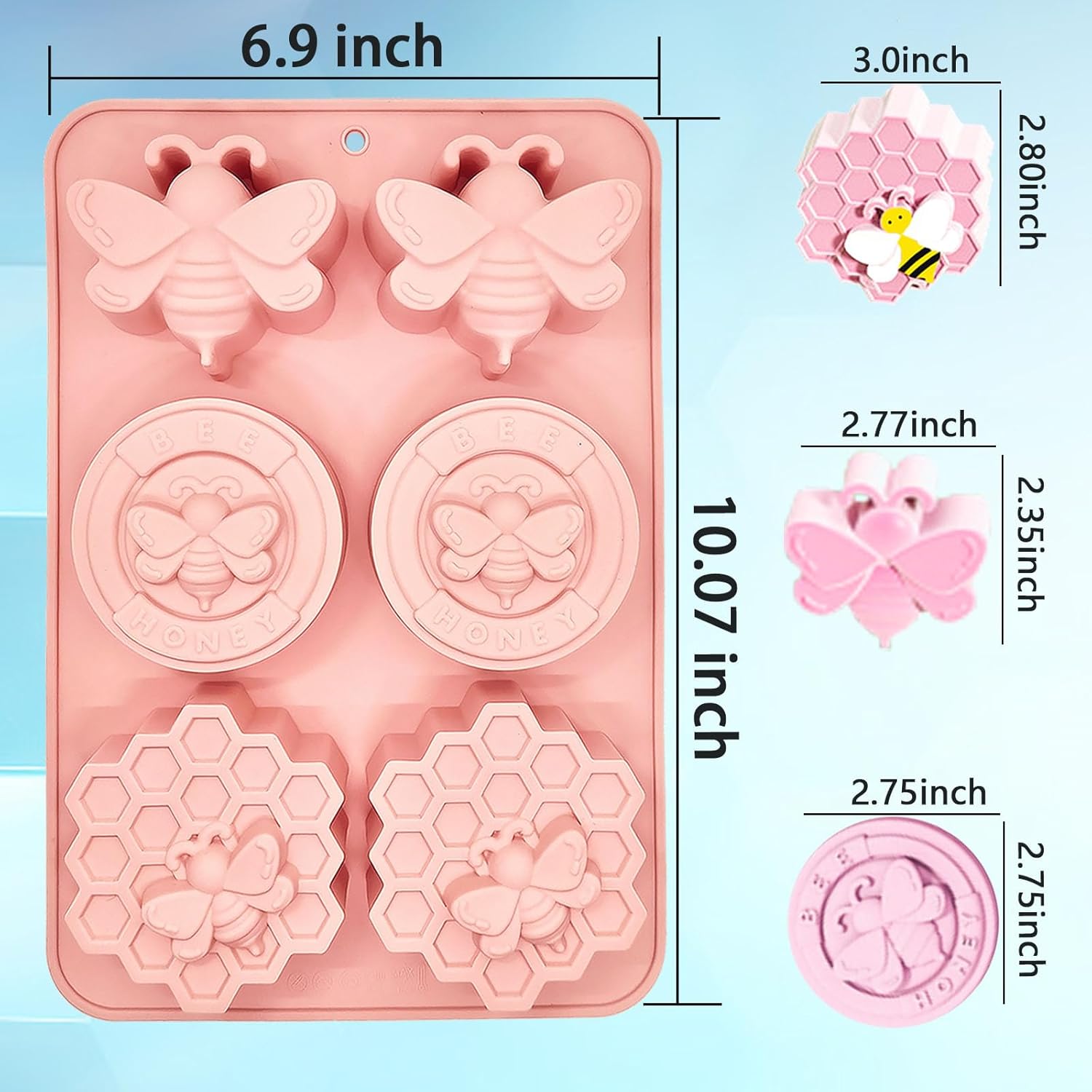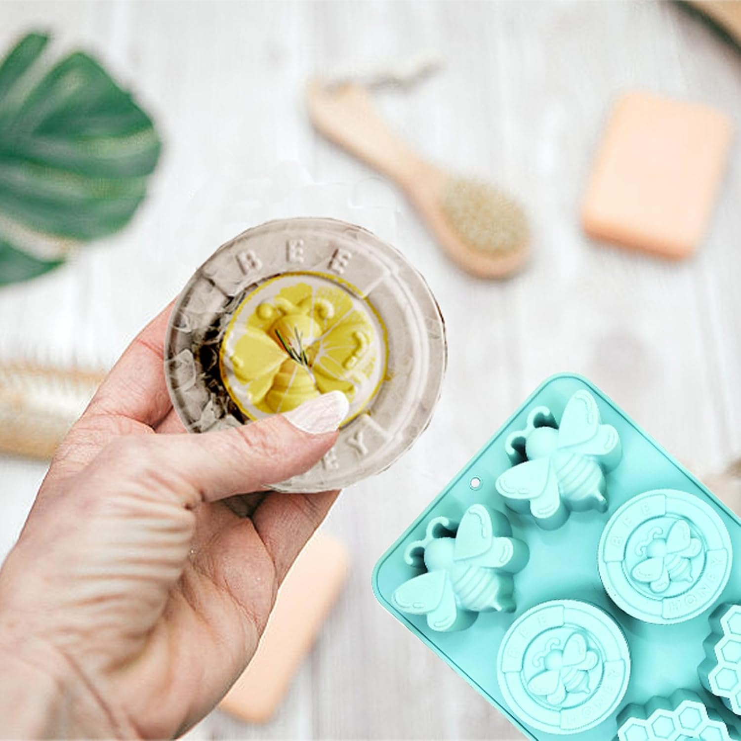 قالب صابون النحل، 6قطع سيليكون لصنع الصابون، رائع للصابون المصنوع يدويًا، وقضبان المستحضر، والشمع المذاب، والحرف اليدوية، والشوكولاتة، والجيلي، وما إلى ذلك.