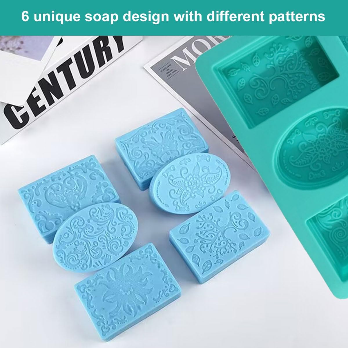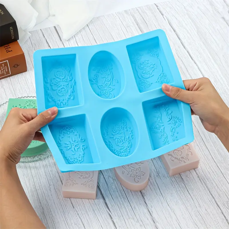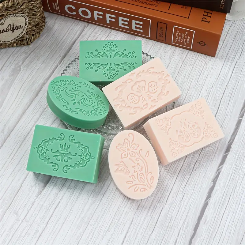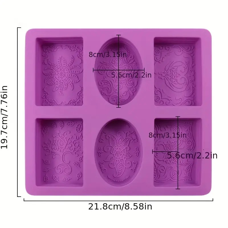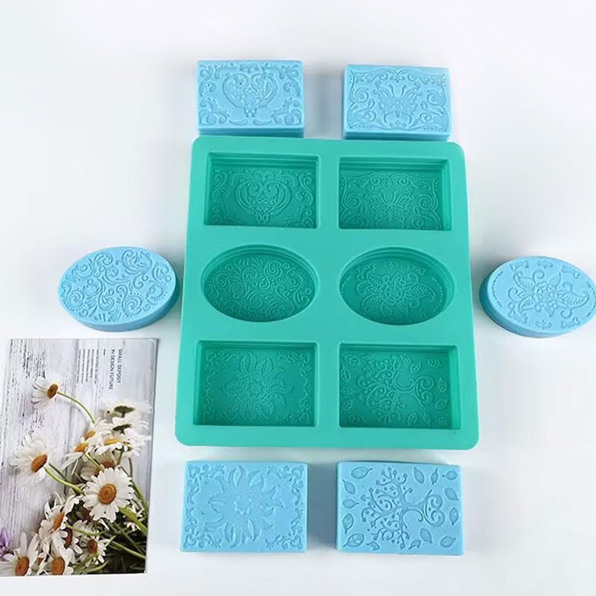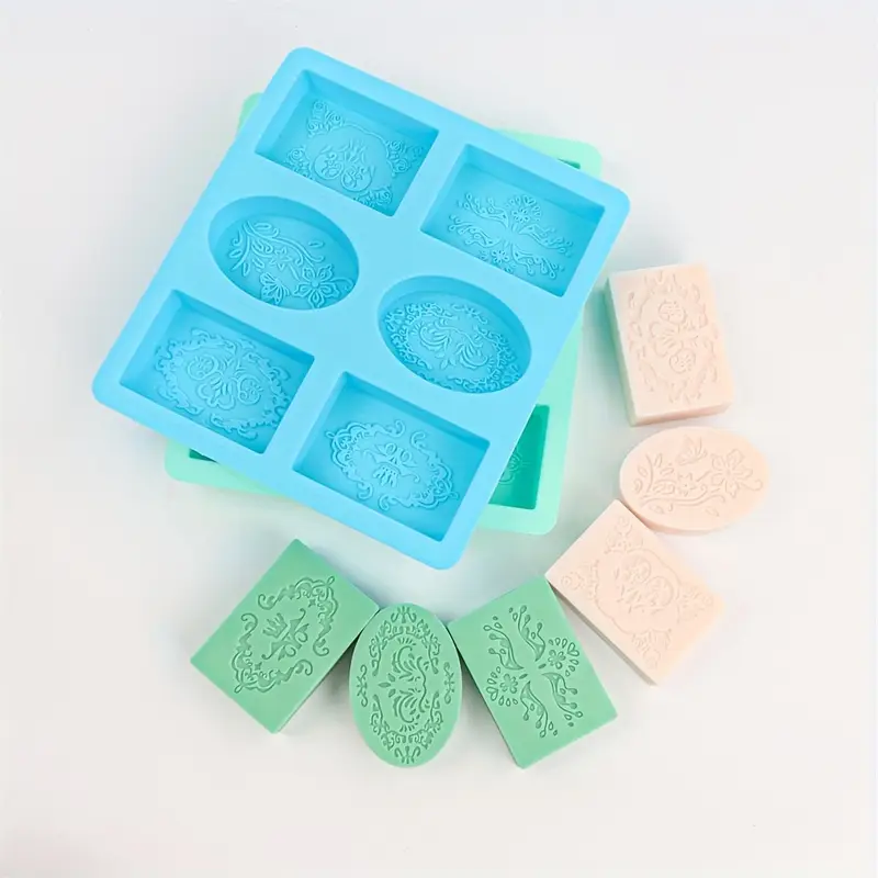 قالب صابون سيليكون 4 قطع مستطيل – 2 بيضاوي – منقوش لعمل الصابون،