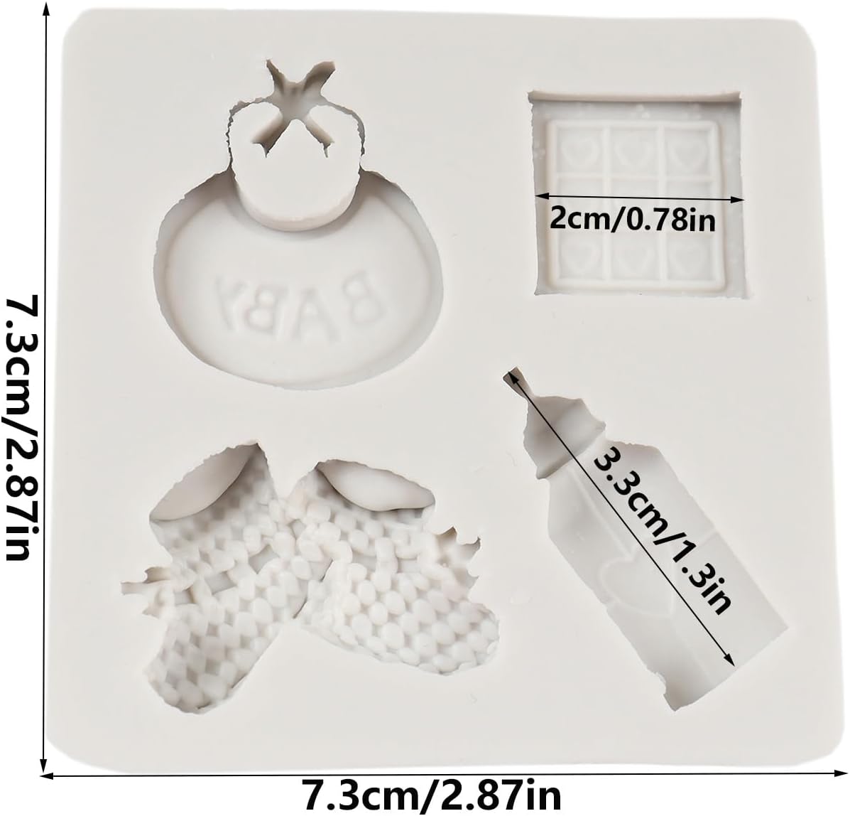 قالب حفل استقبال الطفل: سوف تحصل على قالب واحد من السيليكون لحفل استقبال الطفل. بما في ذلك قوالب زجاجات الأطفال وقوالب اللهاية. يختلف حجم كل قالب، يرجى الرجوع إلى الصورة لمعرفة الحجم المحدد. باستخدام قالب السيليكون لحفل استقبال الطفل هذا، من السهل إنشاء أشكال مفصلة بتصميمات مثيرة، مثالية لتزيين كعكاتك. إنه حقا يوفر الوقت! مما يسمح لك بإضفاء الجودة على عملك.