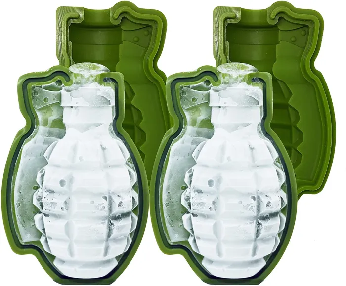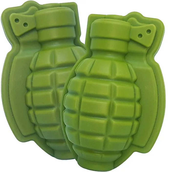 مجموعة قوالب السيليكون ثلاثية الأبعاد على شكل قنبلة يدوية مكونة من قطعتين، مكعب ثلج كبير، قوالب سيليكون لقنابل الدهون، مثالية للخبز