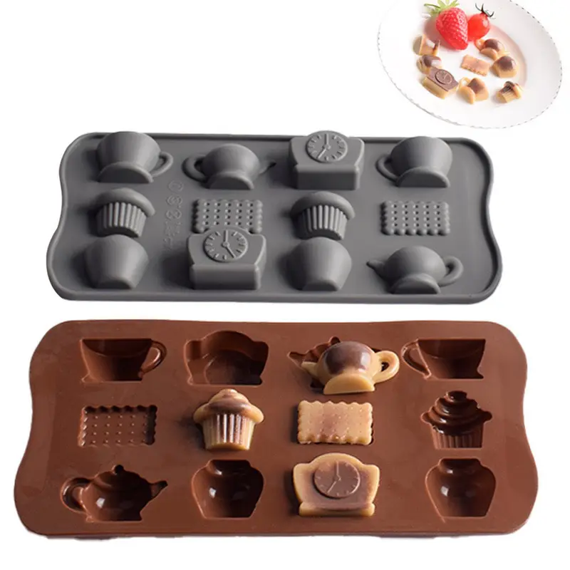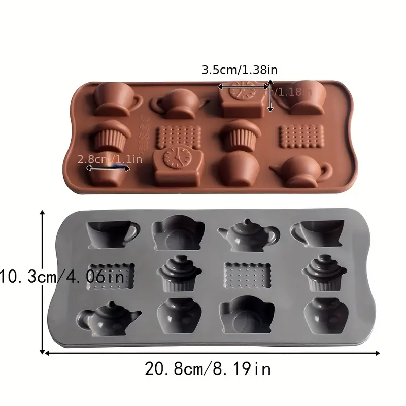 قالب سيليكون لشاي ما بعد الظهيرة، مكونة من قطعة واحدة، مجموعة قوالب سيليكون لشاي ما بعد الظهيرة، إبريق شاي، كوب قهوة، ساعة، تصميمات كب كيك، متعددة الطبقات، للشوكولاتة، البسكويت، الحلوى، أدوات الخبز الحرفية