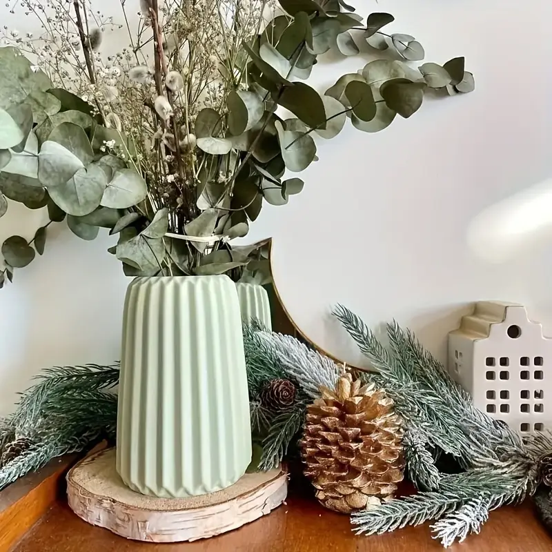 مزهرية كبيرة من السيليكون على شكل فازة مخططه 15 سم وحامل اقلام وزجاجة مخططة على شكل صندوق، قوالب صب سيليكون ايبوكسي للزهور المجففة والزينة وحامل الاقلام، صناعة يدوية ثلاثية الابعاد لديكور المنزل